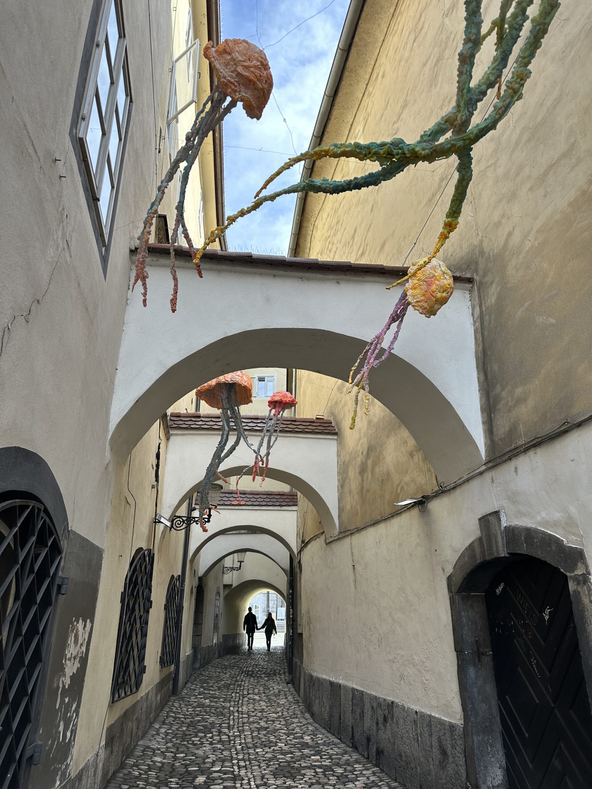 Heute bin ich ausgeschlafen aufgewacht, habe ein leckeres Frühstück genossen und bin dann in die Stadt gelaufen. Am Abend zuvor hatte ich mich für eine Free Walking Tour angemeldet. Die Tour war äußerst interessant und bot eine abwechslungsreiche Möglichkeit, Ljubljana näher kennenzulernen. Danach ging ich noch einmal zur Burg und genoss bei wolkenlosem Himmel die Sonne und die angenehme Wärme – vor allem die Wärme, die ich in den letzten Tagen in den Alpen vermisst hatte.
