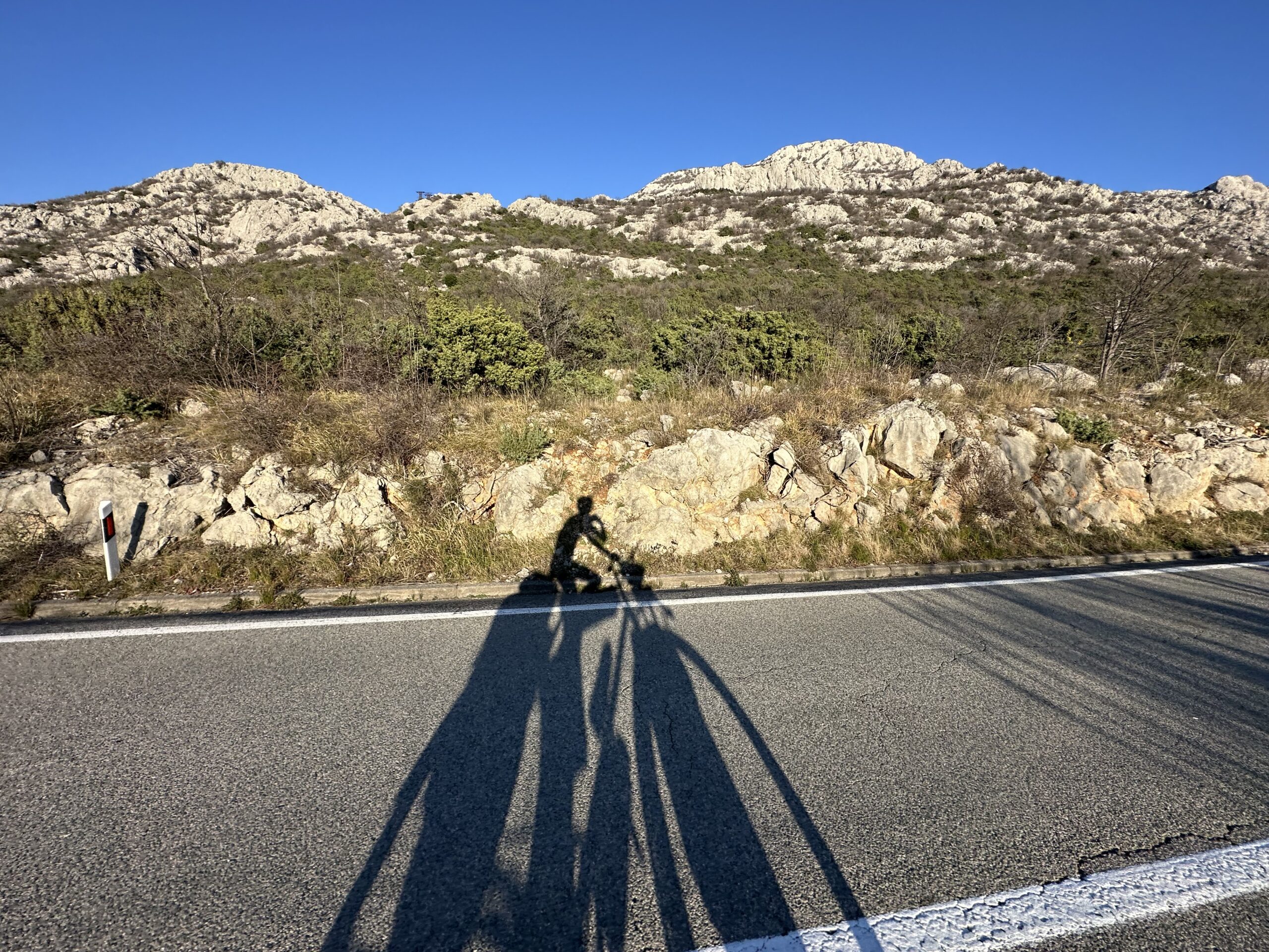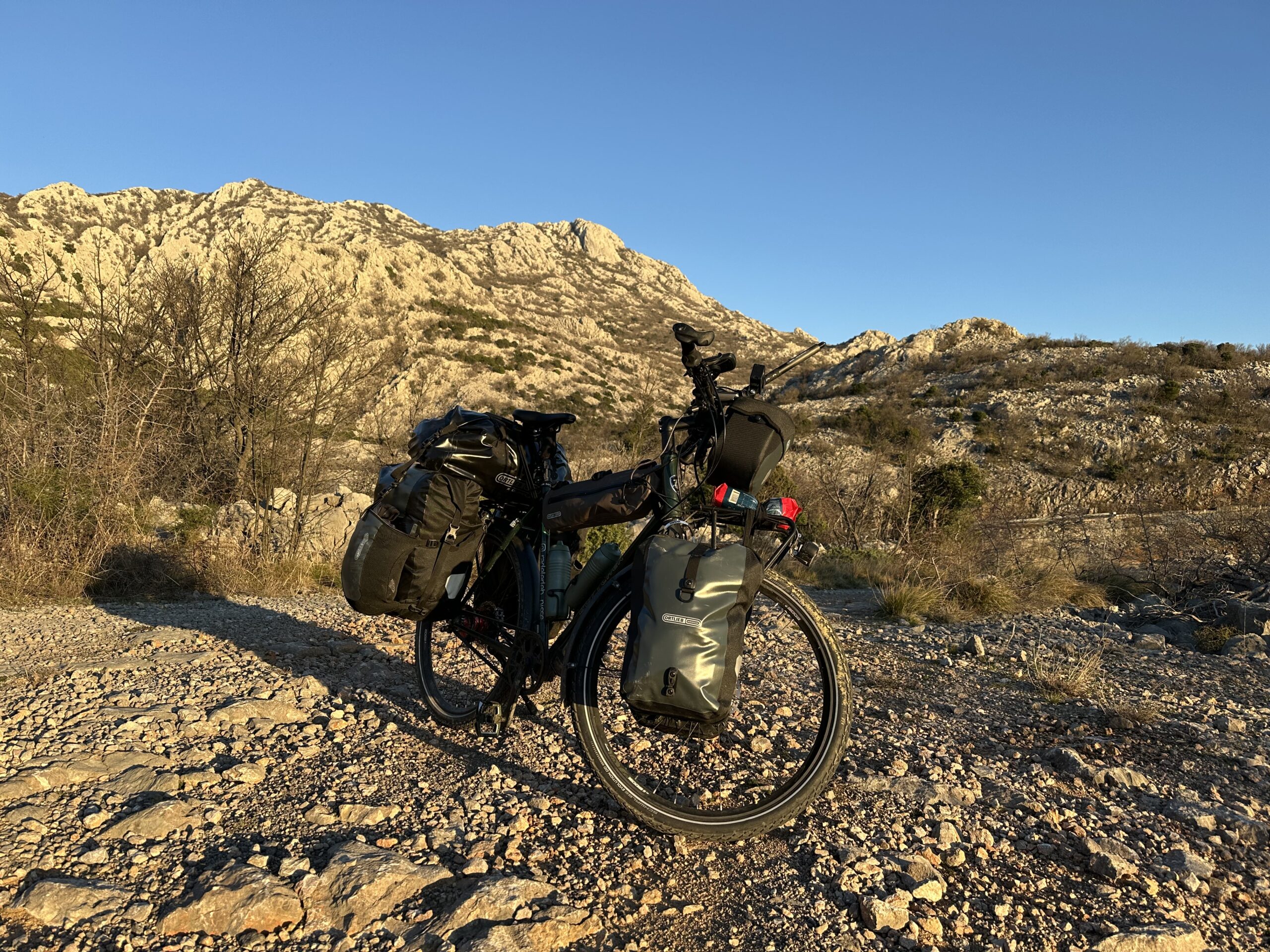 Nach einigen anspruchsvollen Anstiegen führte mich meine Route nach Zadar, von wo aus ich die Fähre auf die Insel Pag nahm. Die Landschaft dort unterschied sich deutlich vom Festland – sie war äußerst steinig, fast wüstenartig. Erst im Inneren der Insel fanden sich kleinere Wälder. Das Radfahren auf Pag war besonders angenehm, da die kleinen Wege abseits der Hauptstraßen kaum von Autos befahren wurden.