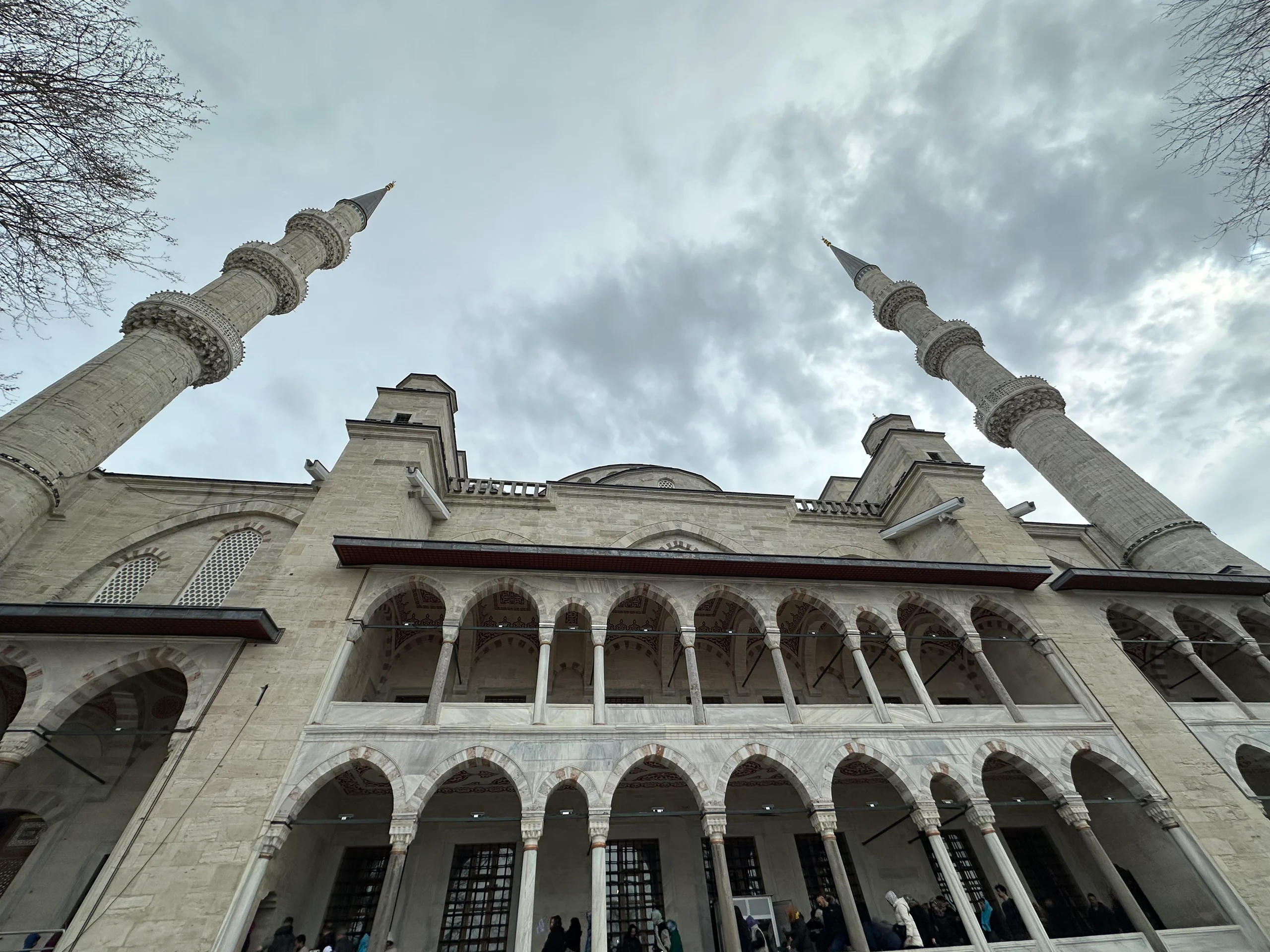 Bereits am Vorabend hatte ich bei demselben Guide, der mich tags zuvor durch Sultanahmet geführt hatte, eine zweite Free-Walking-Tour gebucht. Diese sollte tiefer in die Geschichte Istanbuls und der Türkei eintauchen, den Islam beleuchten und mir noch umfassendere Einblicke in die Kultur ermöglichen. Heute führte uns die dreistündige Tour zu weiteren bedeutenden Moscheen sowie auf den Gewürz- und Ägyptischen Basar. Die intensiven Erklärungen und die Fülle an Details ließen mich die Stadt und ihre Geschichte mit ganz anderen Augen sehen. Anschließend lud mich der Guide in seinen Laden zu Tee, Lokum und Baklava ein – eine köstliche Abrundung des Vormittags.