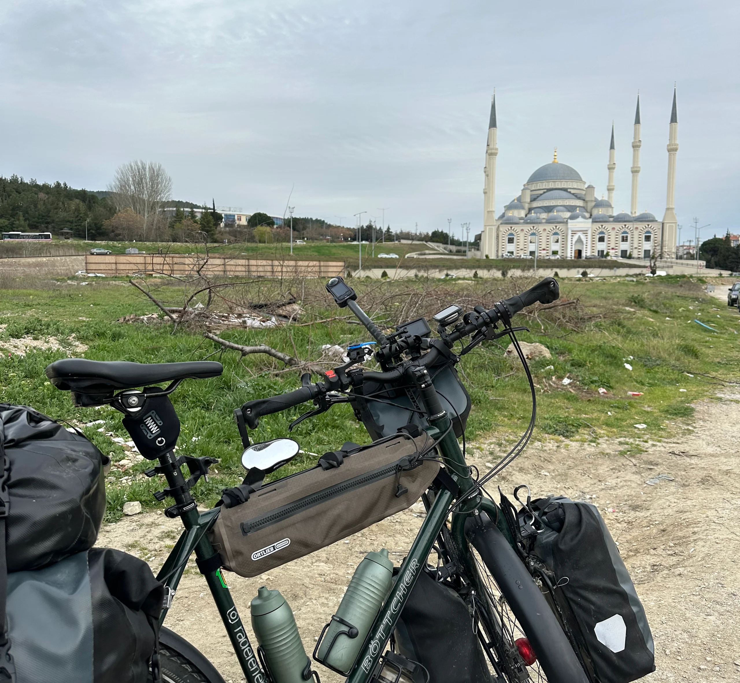 Nach der Ankunft in Çanakkale folgten weitere 20 Kilometer, vorbei an einer eindrucksvollen Moschee, bis ich schließlich inmitten der mediterranen Landschaft einen geeigneten Zeltplatz fand. Leider trübte achtlos weggeworfener Müll vielerorts den Charme dieser ansonsten so idyllischen Küstenregion.