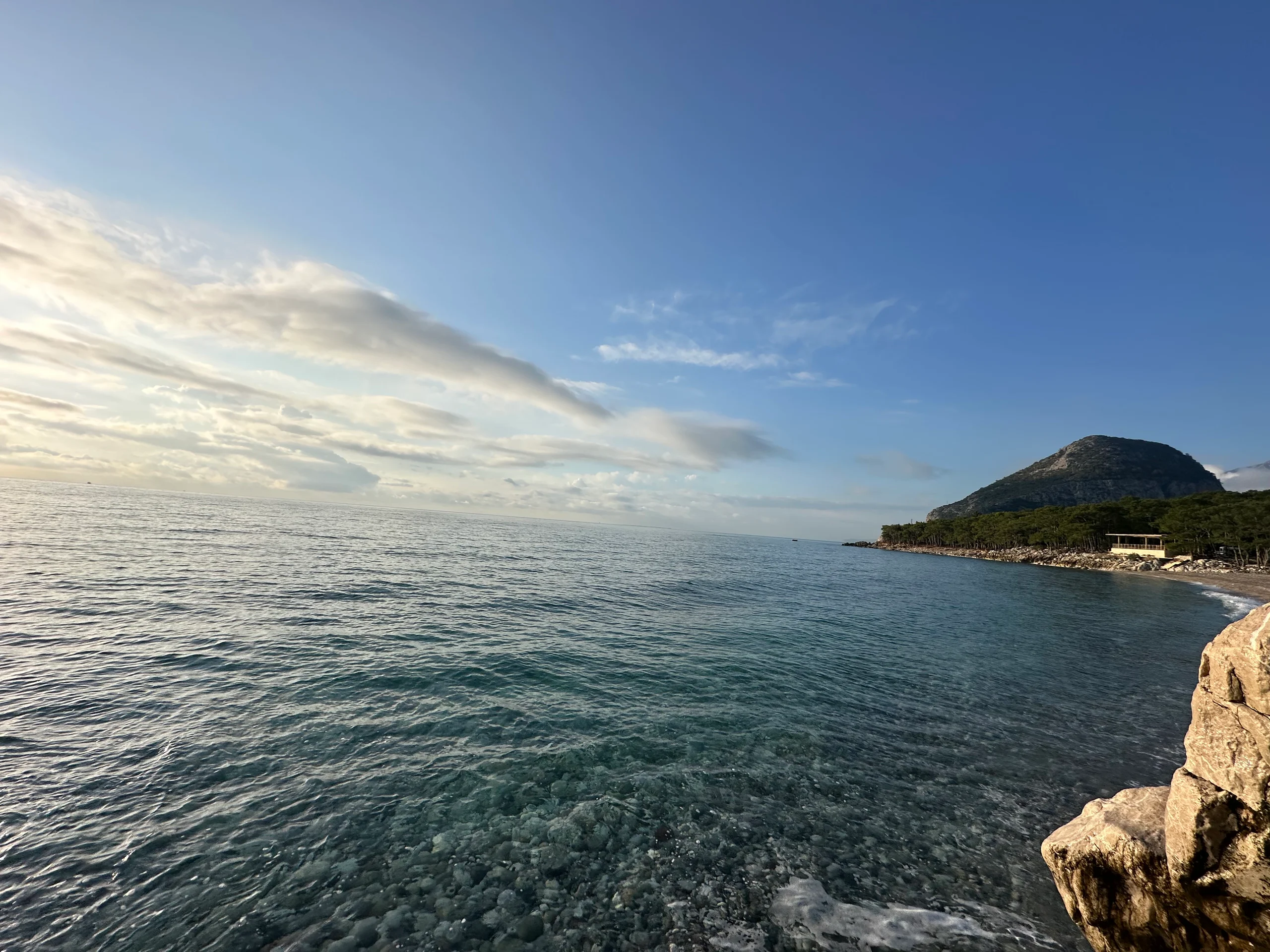 Heute Morgen erwachte ich mit Blick auf das Mittelmeer. Ich setzte mich auf einen Stein am Ufer, blickte in die Ferne und genoss den Sonnenaufgang über dem Meer. Heute war die Fahrt zu meiner Warmshowers-Unterkunft bei meinem Gastgeber nur 30 km entfernt. Der Weg durch Antalya gestaltete sich relativ einfach, da es gut ausgebaute Radwege gab.
