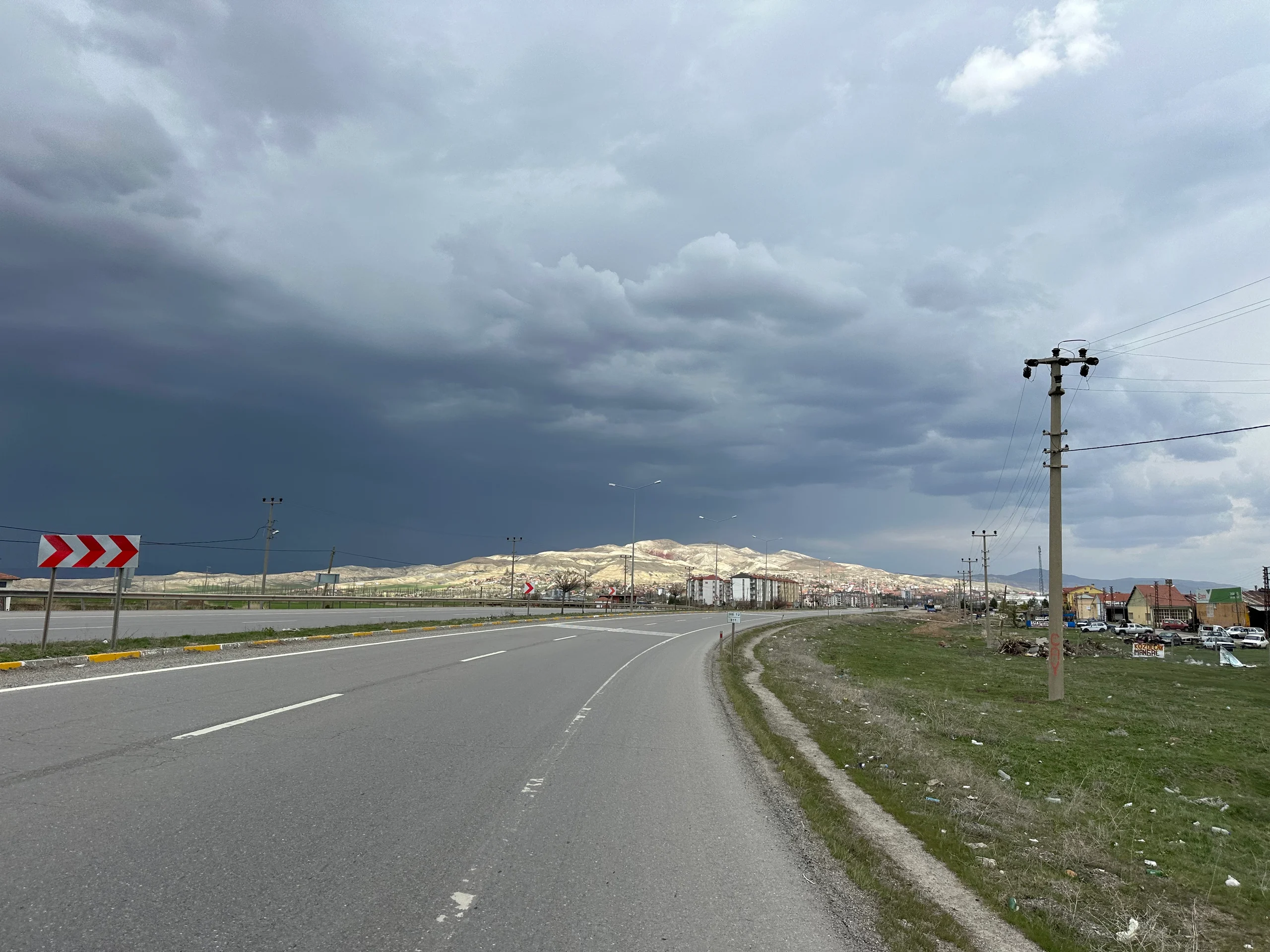 Der Salzsee lag eingebettet in ein weites Tal zwischen Bergen. Um auf meine geplante Route zurückzukehren, musste ich das Tal hinter mir lassen und erneut einen dieser Berge überwinden. Komoot führte mich zunächst noch einige Kilometer durch das Tal – doch die Wege, auf die ich dort traf, waren eine Katastrophe: tiefer Sand, lockerer Schotter, steiniger Untergrund und dazwischen das typische Waschbrettprofil. Immer wieder donnerten schwere LKWs an mir vorbei, die Schotter, Sand oder Steinmaterial aus dem Tal abtransportierten.