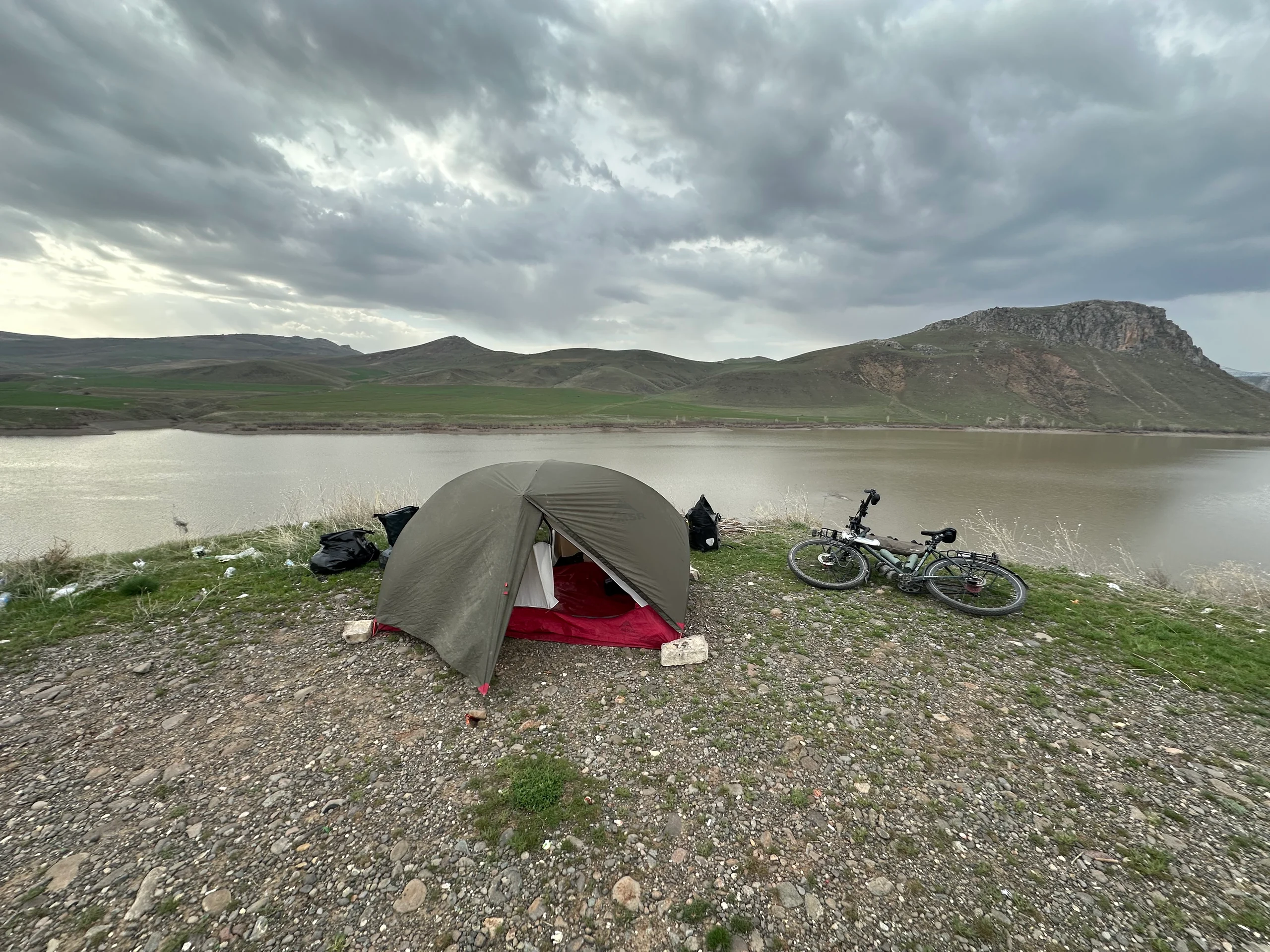 Als ich heute Morgen am See erwachte, war ich erleichtert, dass der angekündigte Regen in der Nacht ausgeblieben war. Auch die dunklen Wolken am Horizont verzogen sich langsam. So saß ich dort, am Ufer des Tercan Barajı, mit Blick auf das glatte Wasser und genoss mein Frühstück – Toastbrot mit Erdnussbutter. Eine willkommene Abwechslung zu den täglichen Schokokeksen.