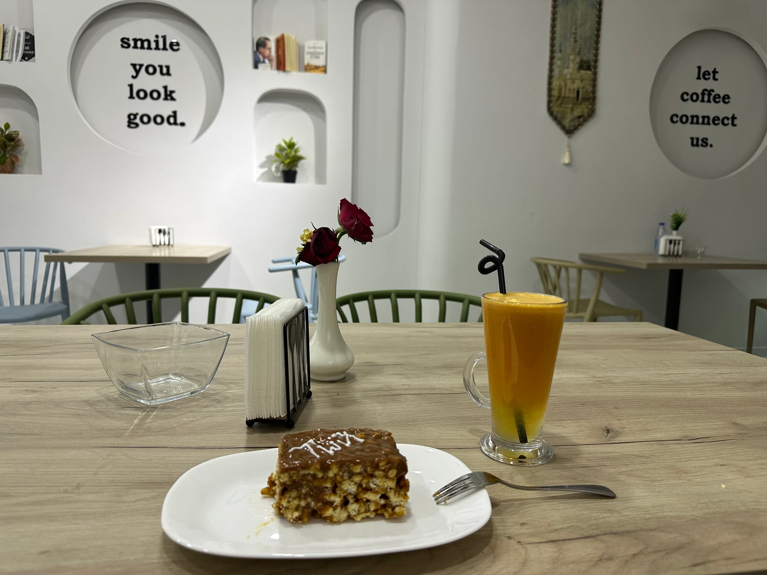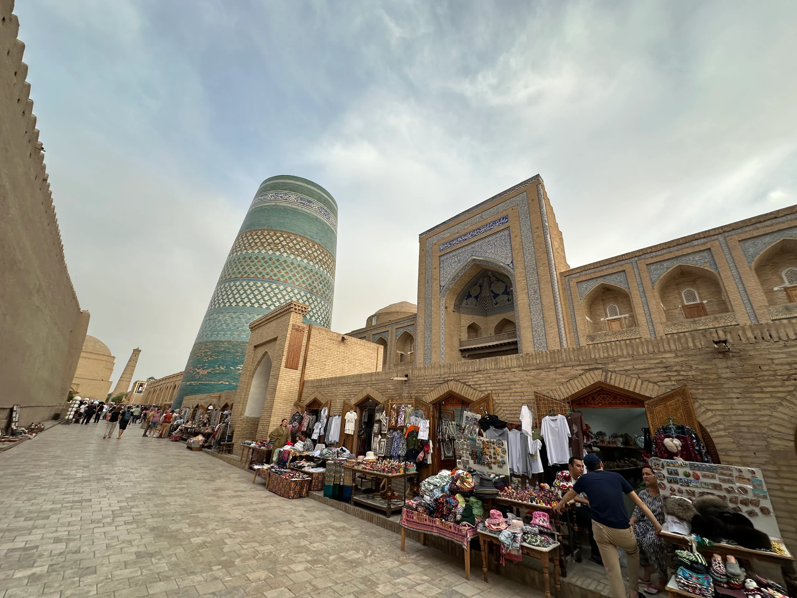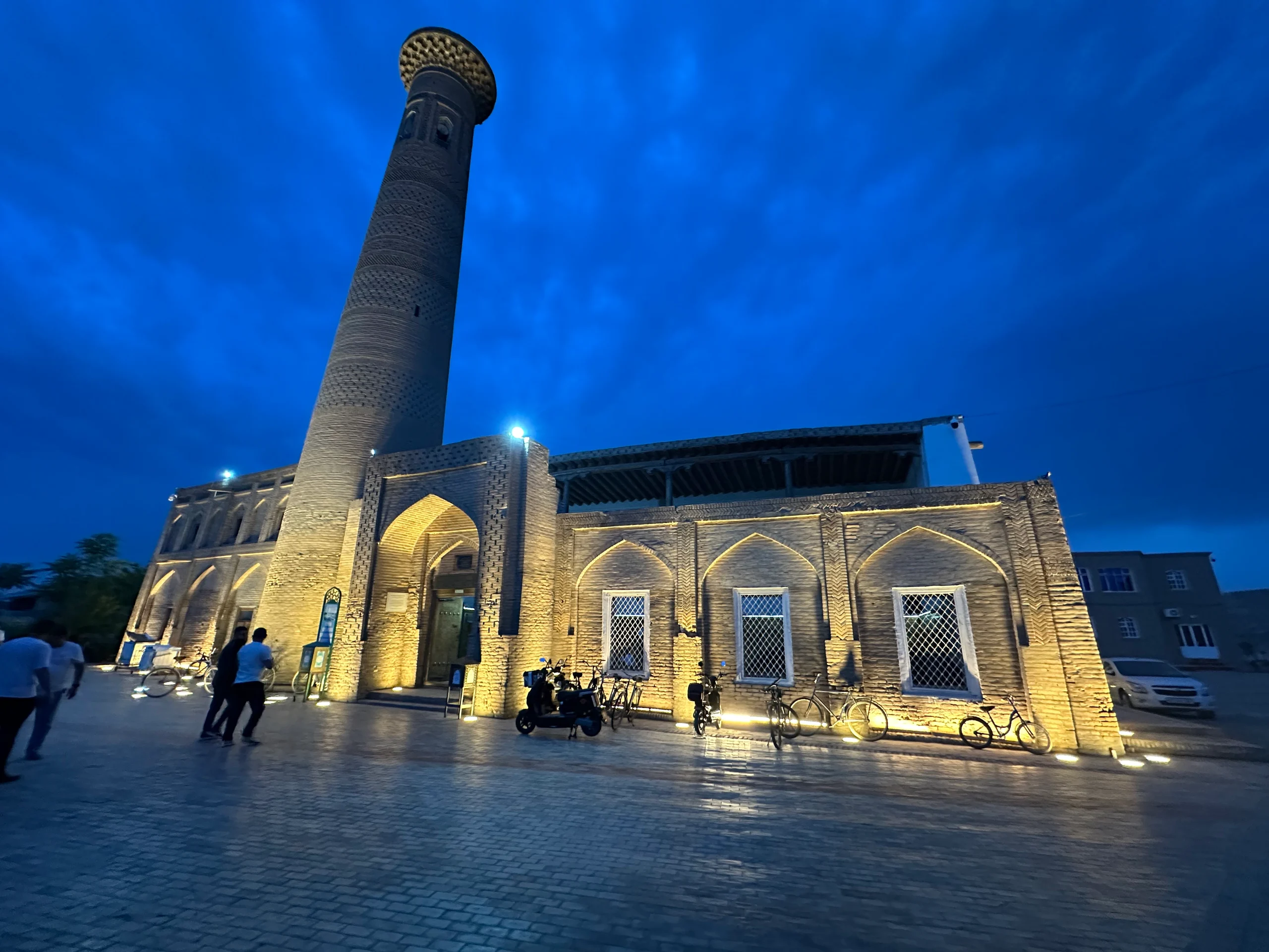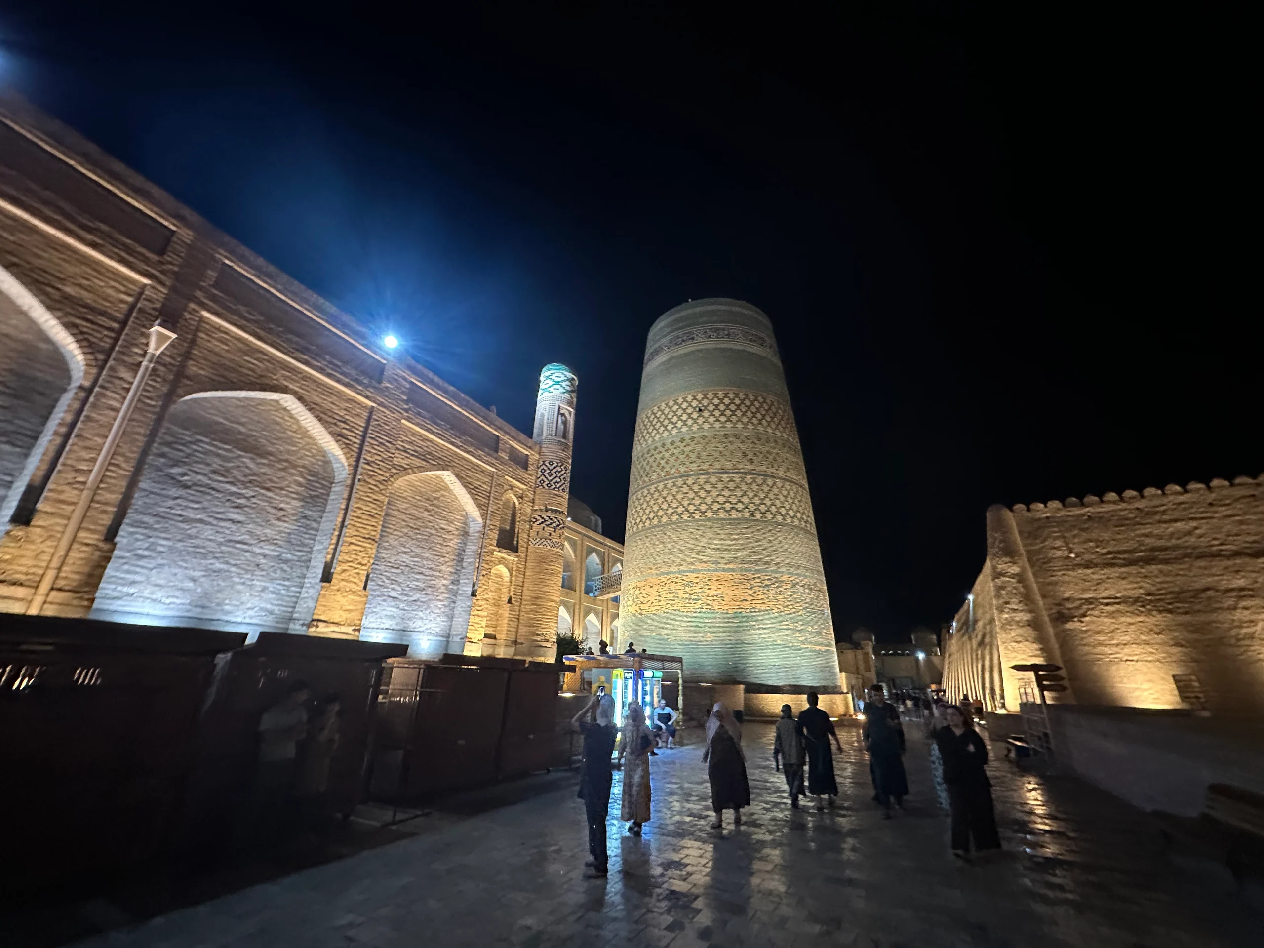 Nach einer gründlichen Dusche – Sonnencreme, Schweiß und Staub hatten sich gut angesammelt – machte ich mich auf, die beeindruckende Altstadt zu erkunden. Die historische Architektur war wirklich atemberaubend. Am Abend gönnte ich mir einen Kuchen und frischen Karottensaft in einem kleinen Café, bevor ich in einem Restaurant noch gefüllte Teigtaschen mit Pilzen und Ei bestellte – eine usbekische Spezialität, die meistens mit Fleisch serviert wird, hier aber auch vegetarisch angeboten wurde.