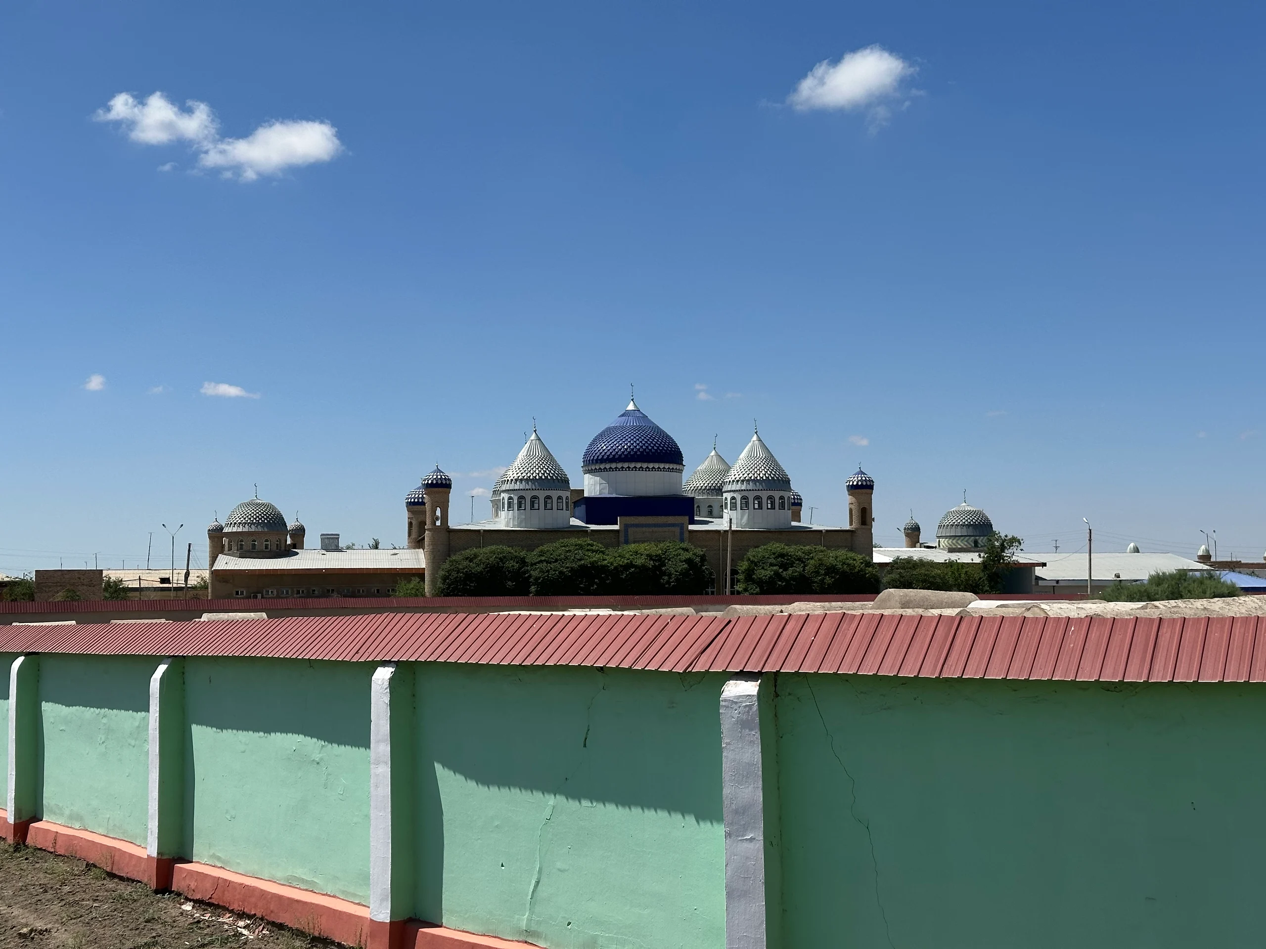 Am nächsten Morgen setzte ich meine Reise fort. Nach einem recht spartanischen Frühstück machte ich mich auf den Weg zur Straße Richtung turkmenischer Grenze, die mich zurück auf die Hauptstraße führen sollte. Doch bereits nach wenigen Kilometern bereute ich meine Entscheidung – die Straße war in einem katastrophalen Zustand. Über fast 90 Kilometer musste ich mich durch tiefe Schlaglöcher und zerfurchte, bröckelnde Asphaltreste kämpfen. Es war anstrengend und forderte höchste Konzentration, um nicht vom Rad geschleudert zu werden.