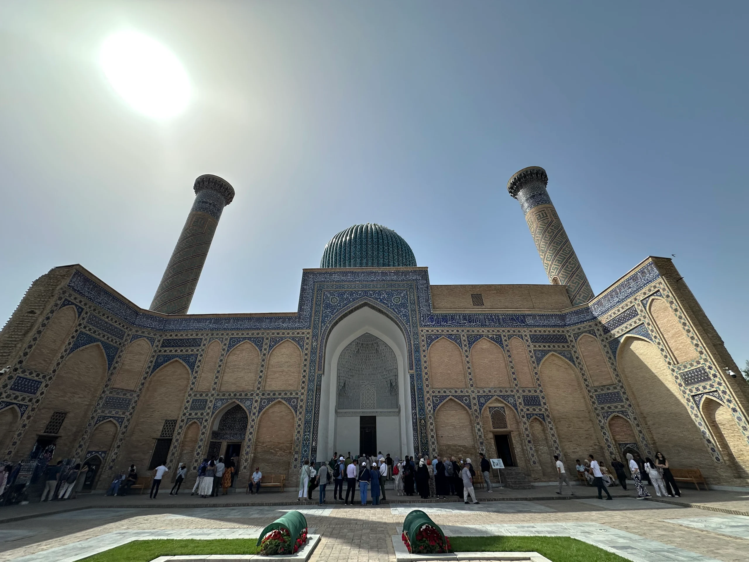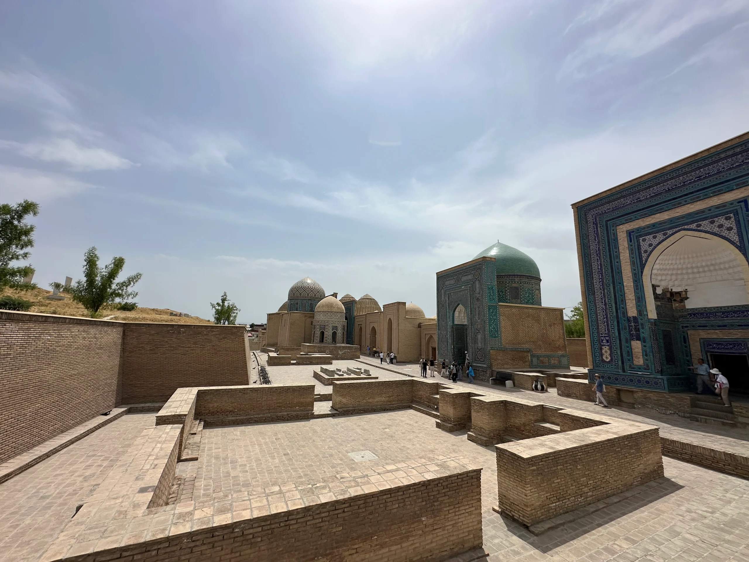 Im Anschluss besuchten wir zu dritt noch das Schahi-Sinda-Ensemble, eine Ansammlung zahlreicher Mausoleen an einem Ort. Wir fotografierten ausgiebig und bewunderten die beeindruckende Architektur. Danach trennten sich unsere Wege, und jeder von uns nahm ein Yandex-Taxi zu seiner Unterkunft. Zum Vergleich: Meine Fahrtstrecke von etwa fünf Kilometern bei einer Fahrzeit von rund 15 Minuten kostete inklusive Trinkgeld lediglich 70 Cent – ein wirklich erstaunlich günstiger Preis.