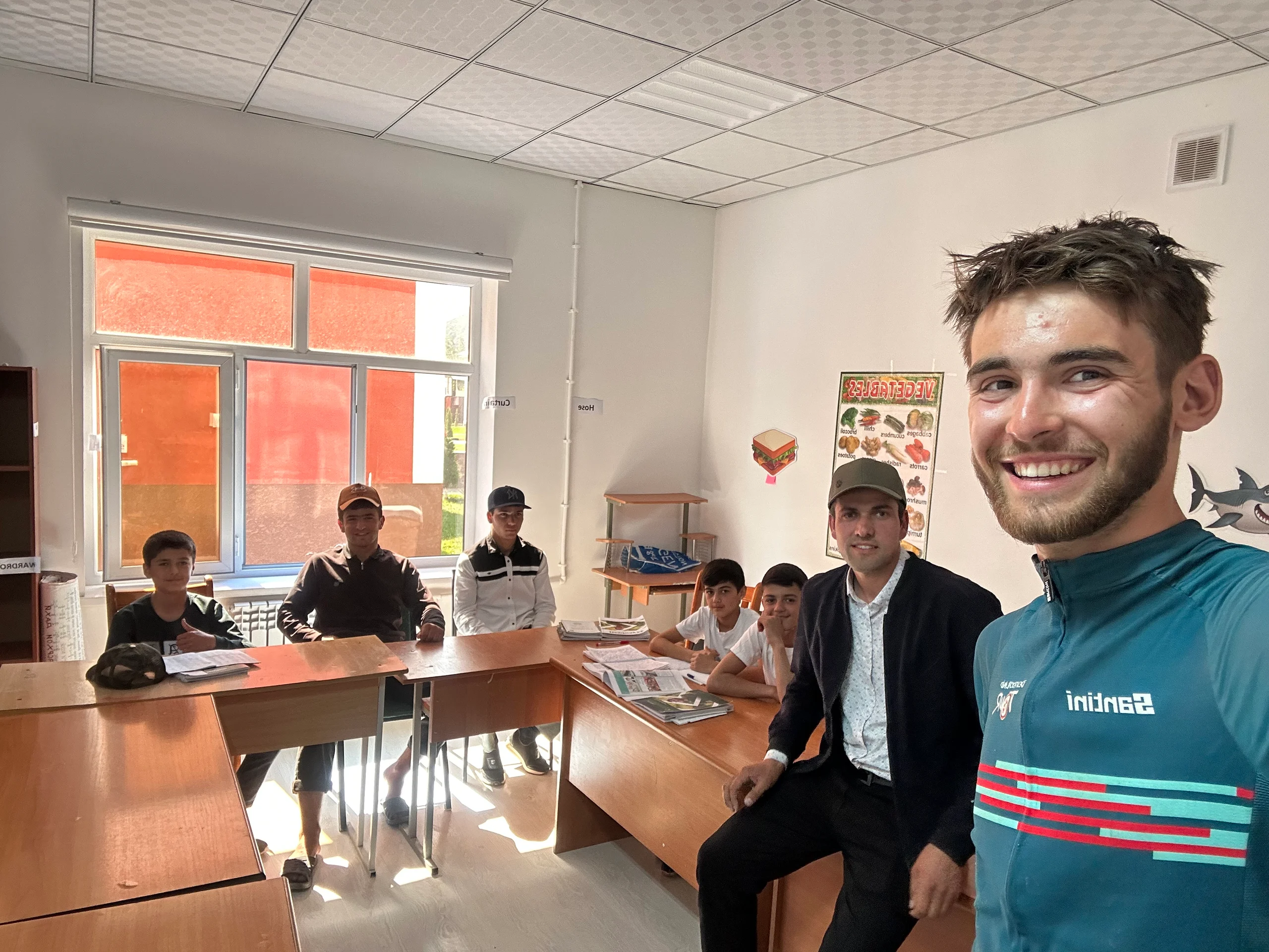 Am Mittag erreichte ich einen Polizeiposten. Dort fragte ich, ob ich durch mein GBAO Permit – die Genehmigung für Reisen im Pamir – automatisch bei der Polizei registriert sei oder ob ich das noch erledigen müsse. Da der Beamte kein Englisch sprach, rief er kurzerhand einen Englischlehrer aus dem Dorf an, der als Übersetzer einsprang. Dieser bestätigte mir, dass ich registriert sei und keine Probleme bei der Ausreise zu befürchten habe – eine Erleichterung, denn am Vortag hatten mir andere Radreisende von Strafzahlungen berichtet, wenn man das versäumt.
