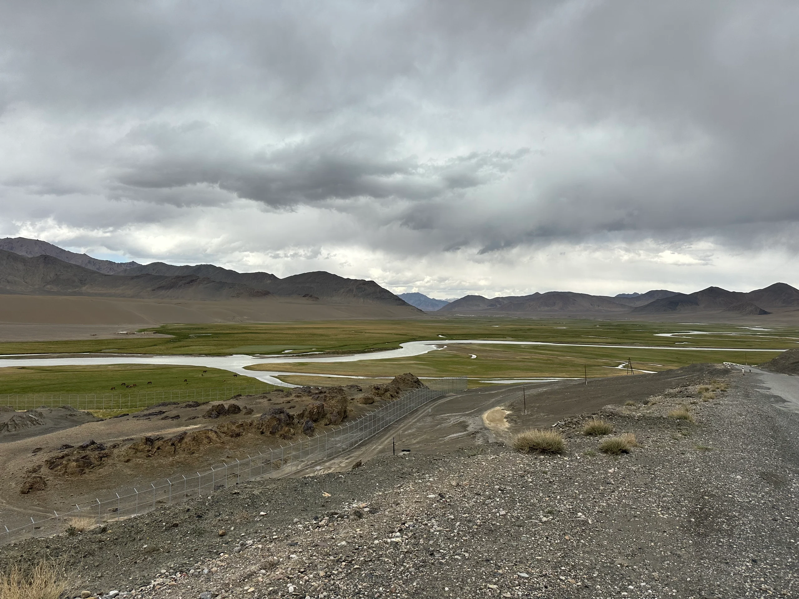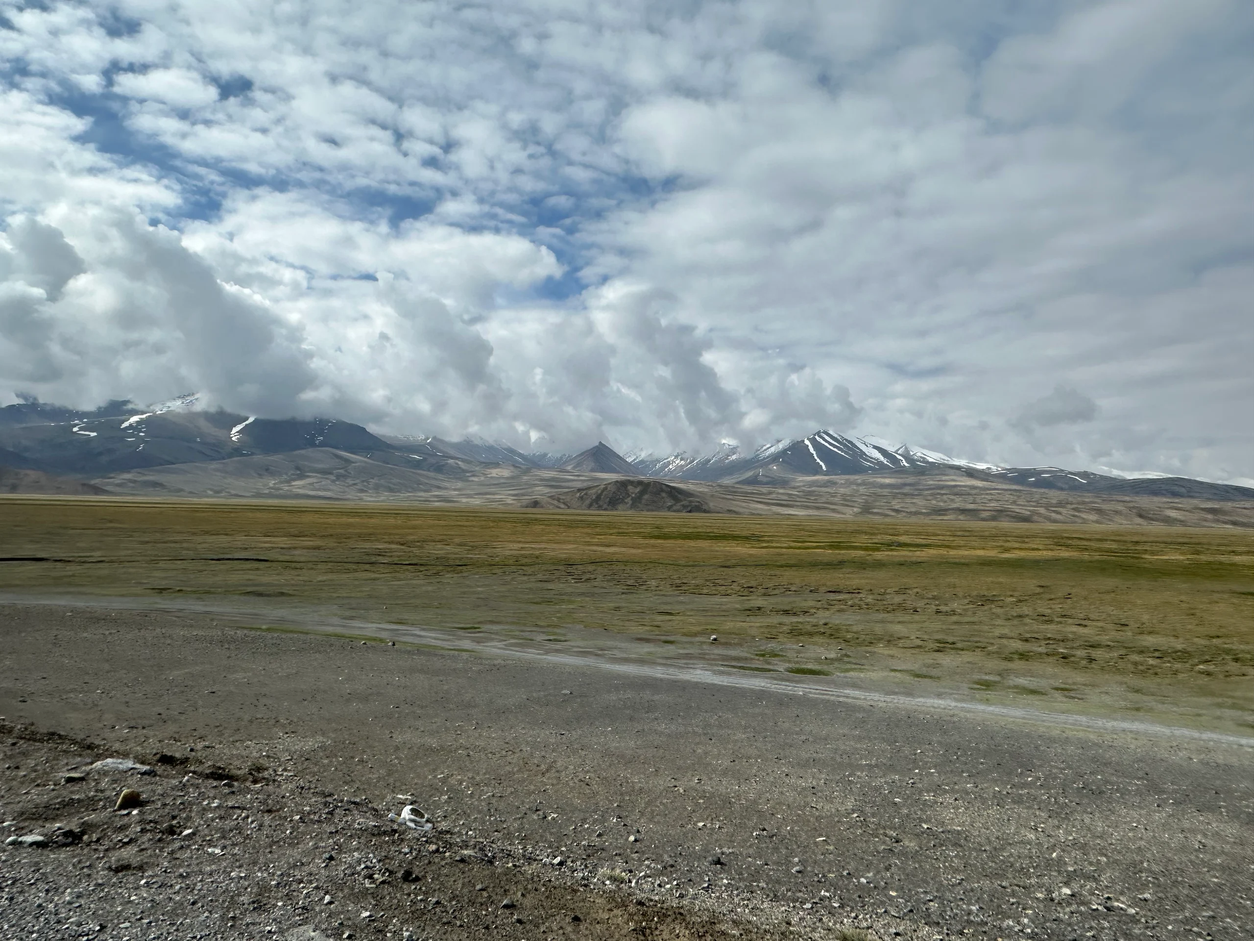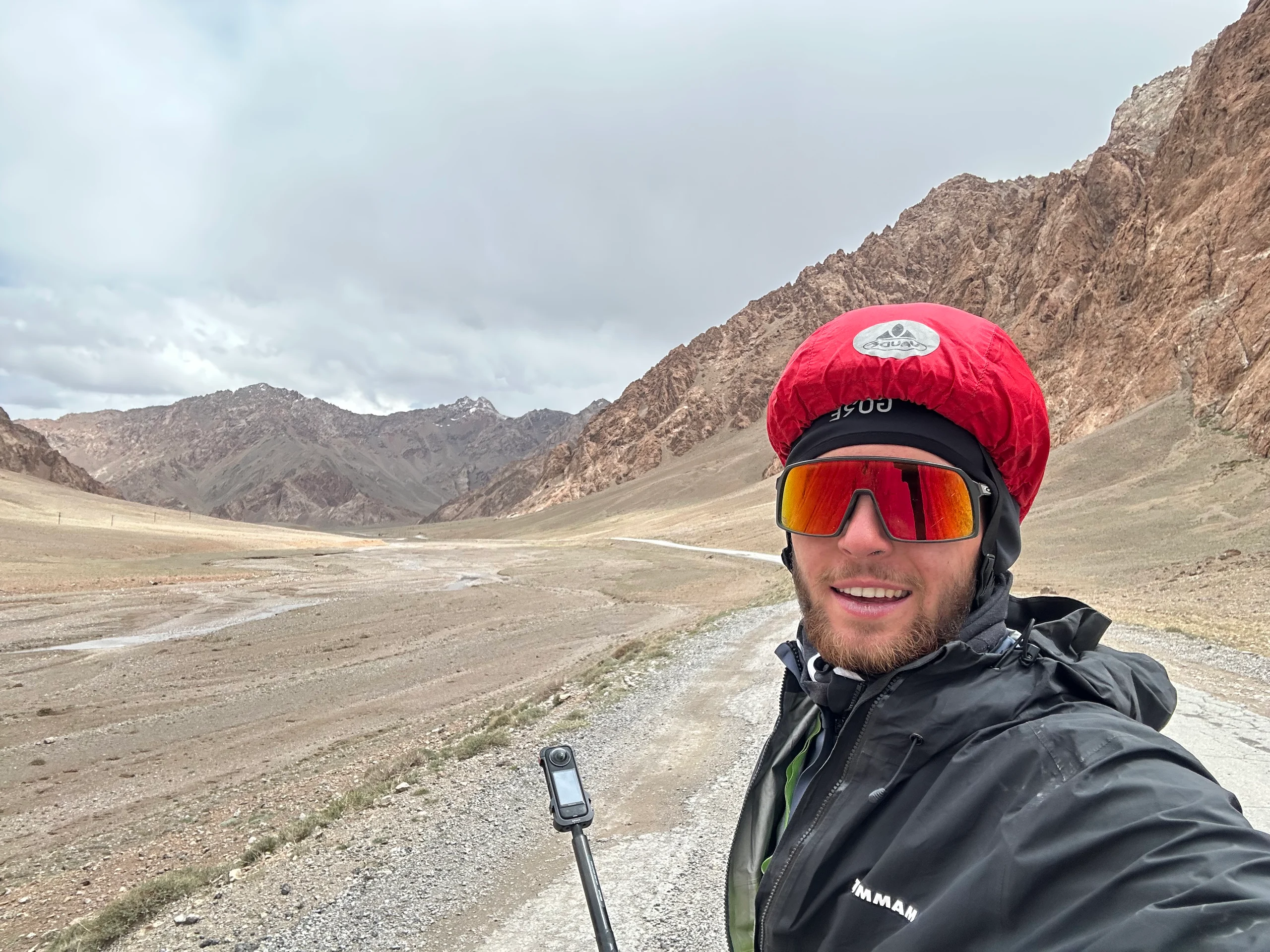 Heute nahm ich mir eine längere Etappe von Alichur nach Murghob vor. Die Straßen waren einigermaßen gut geräumt, sodass ich von den 3900 Metern, auf denen ich übernachtet hatte, relativ gut auf 4200 Meter kam – dort lag der Pass, den ich heute überqueren musste. Oben angekommen, war das Wetter wieder rau, aber die Landschaft unglaublich schön.