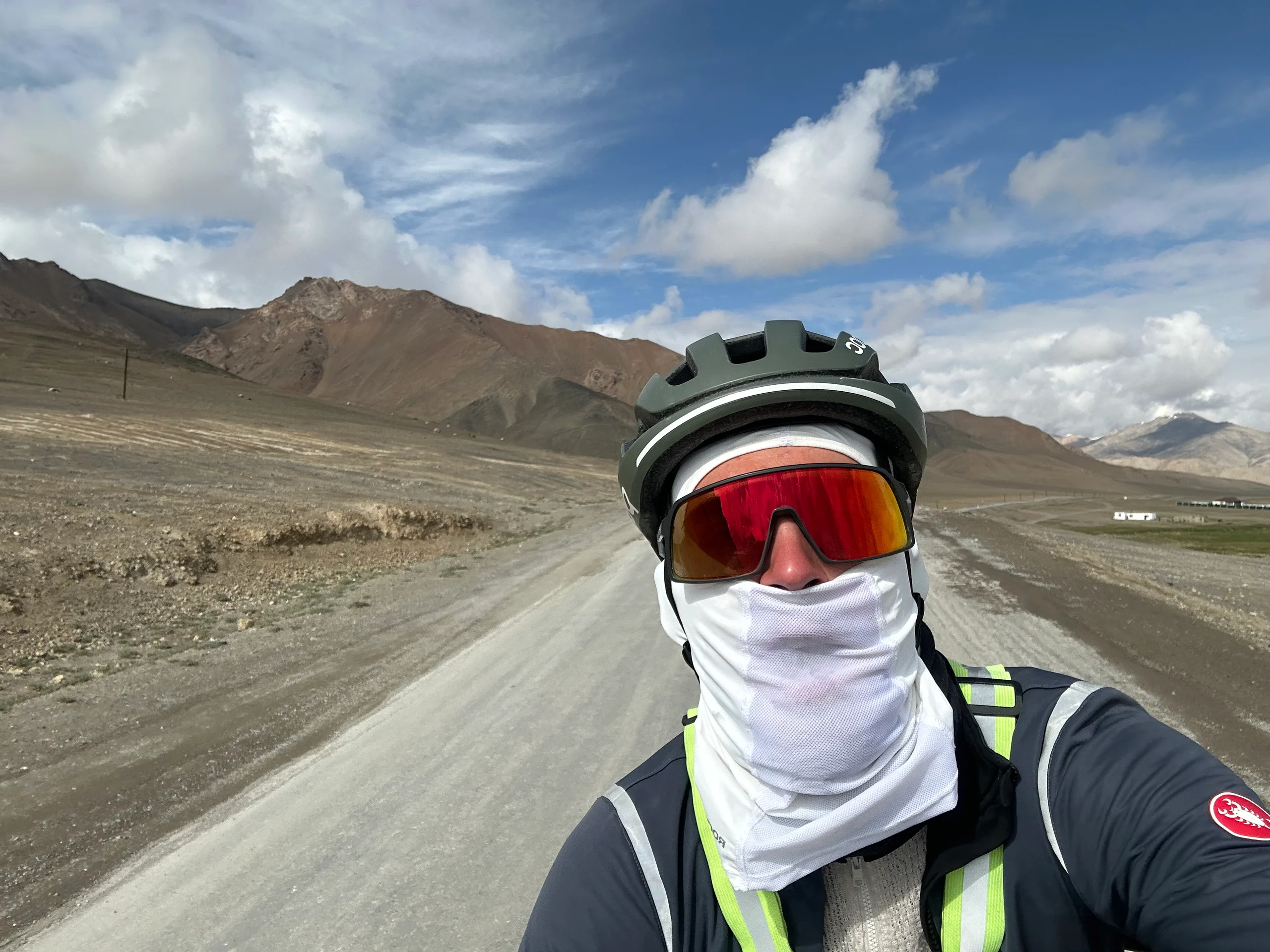Gegen 16:00 Uhr erreichte ich nach 105 Kilometern Murghob, die Hauptstadt der Pamirregion. Dort traf ich gleich einige Radfahrer: Ein Schweizer, der seit 2022 unterwegs ist, und bereits Südamerika, Neuseeland, Australien und Indonesien durchquert hat und von Singapur zurück in die Schweiz fährt – eine beeindruckende Reise, die bei mir in umgekehrter Richtung im Kopf herumschwirrt.