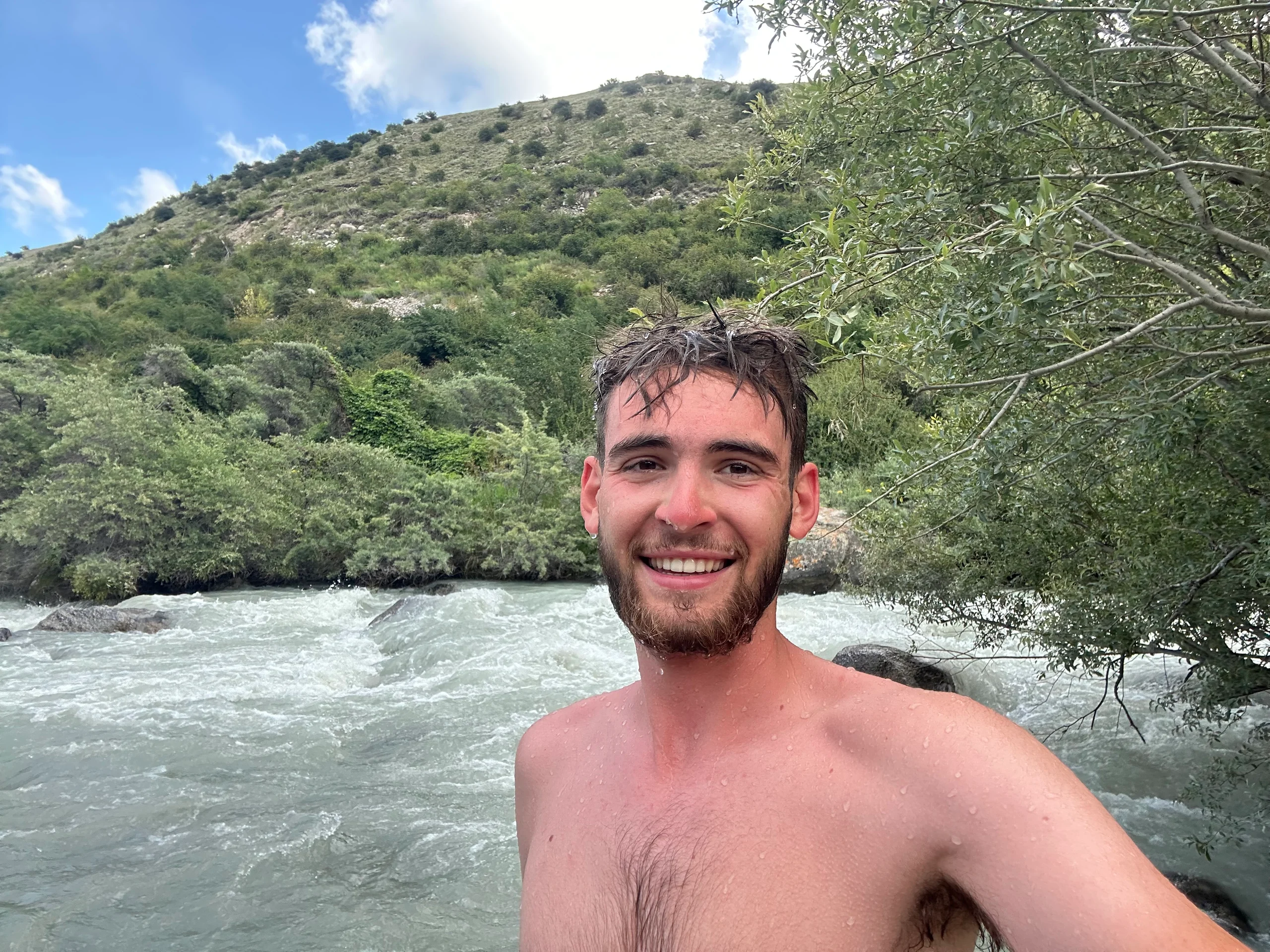 Ein Kirgise vor Ort zeigte mir eine effektive Bade-Routine: Erst für 2–3 Minuten ins heiße Becken, dann ein kurzer Sprung in den eiskalten Fluss, danach zurück ins heiße Becken – und das Ganze so oft wiederholen, wie es sich gut anfühlt. Ich machte ganze sechs Durchgänge, legte eine kurze Pause ein und wiederholte sie erneut sechs Mal. Danach war ich wirklich durchgewärmt und angenehm erschöpft.