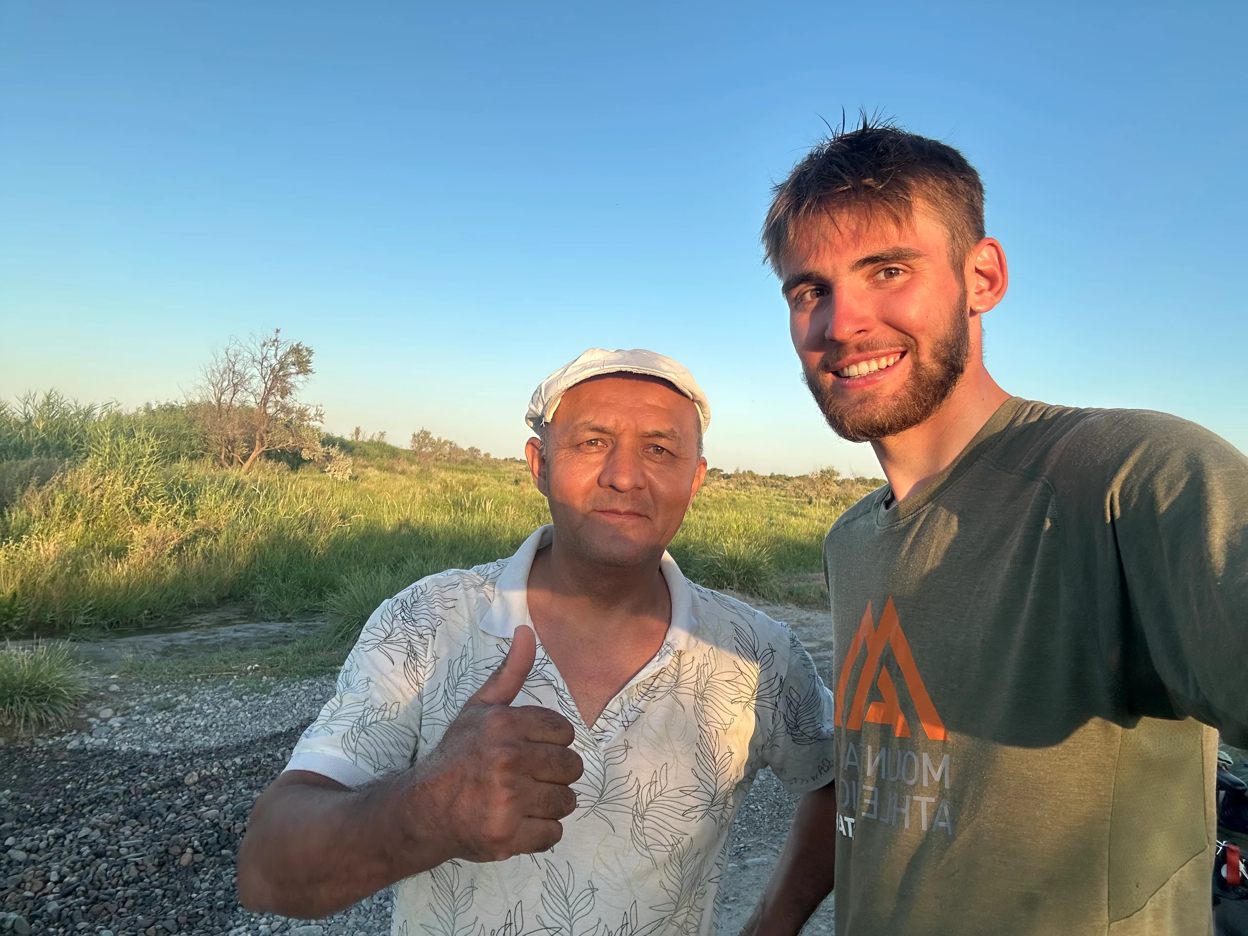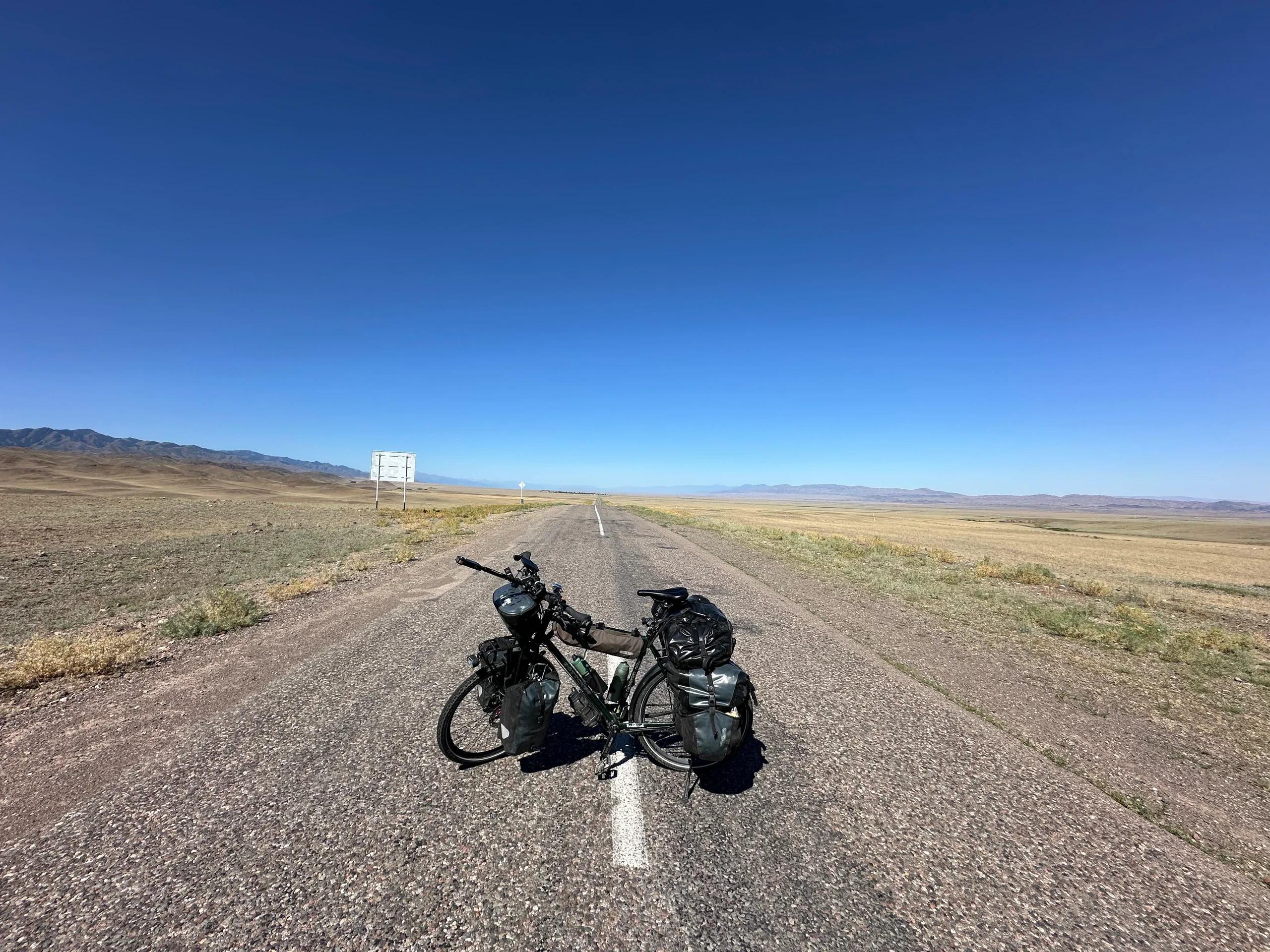In einem kleinen Dorf nach rund 65 km machte ich meinen ersten Stopp. Ich musste dringend Wasser nachkaufen – insgesamt füllte ich etwa 4 Liter auf. Dafür musste ich erst einmal Bargeld abheben, was ich eigentlich vermeiden wollte, da ich nur ein paar Tage in Kasachstan bin. Aber bei diesen Temperaturen ging Wasser vor Plan.