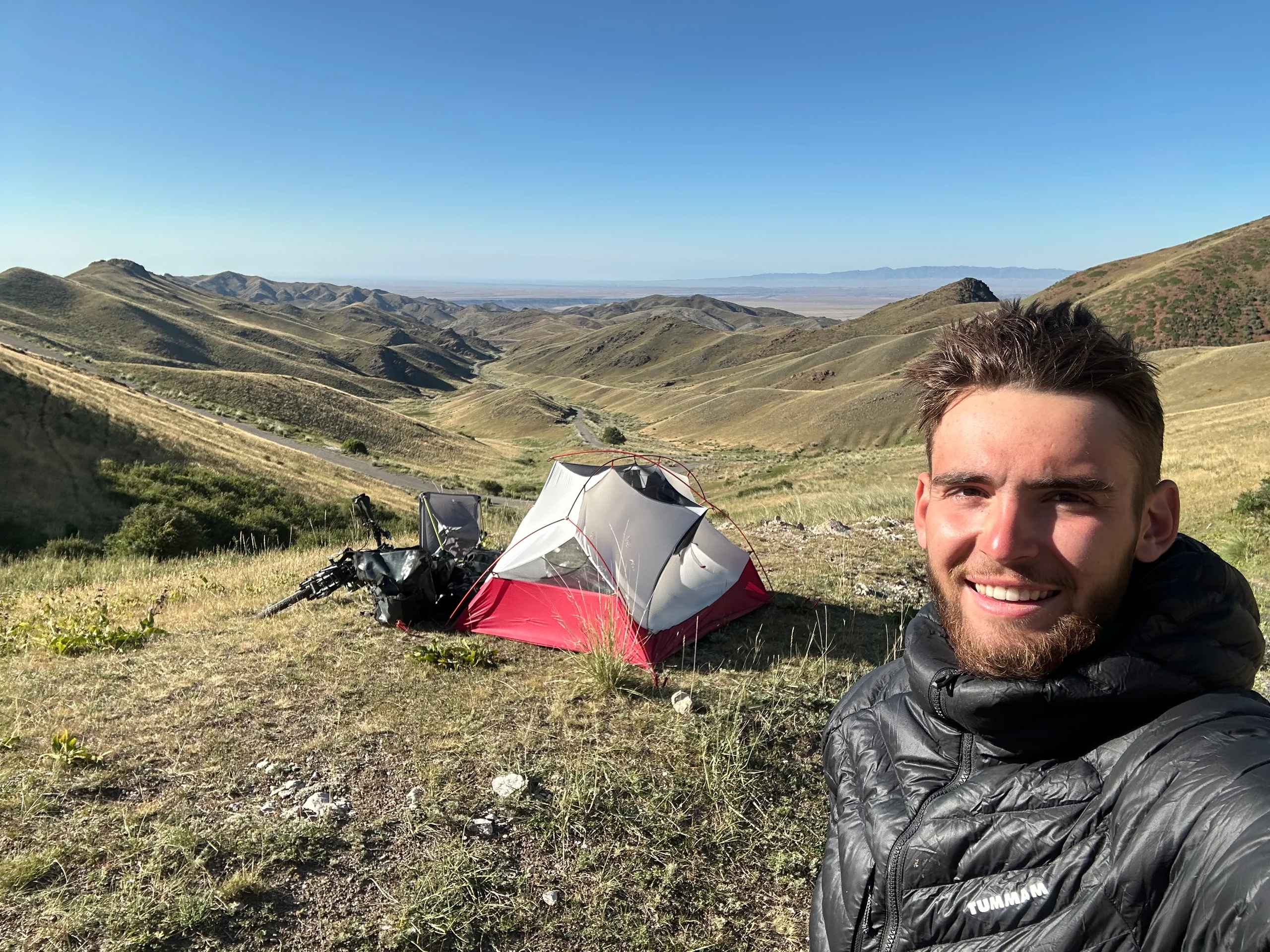 Am Morgen war die Müdigkeit wie weggeblasen. Ich fühlte mich wieder voller Energie für den bevorstehenden Tag – schließlich wollte ich ein gutes Stück in Richtung chinesischer Grenze vorankommen. Zum Frühstück gab es Müsli mit Joghurt und eine Banane, die ich mir am Vortag im Supermarkt besorgt hatte – ein starker Start in den Tag.