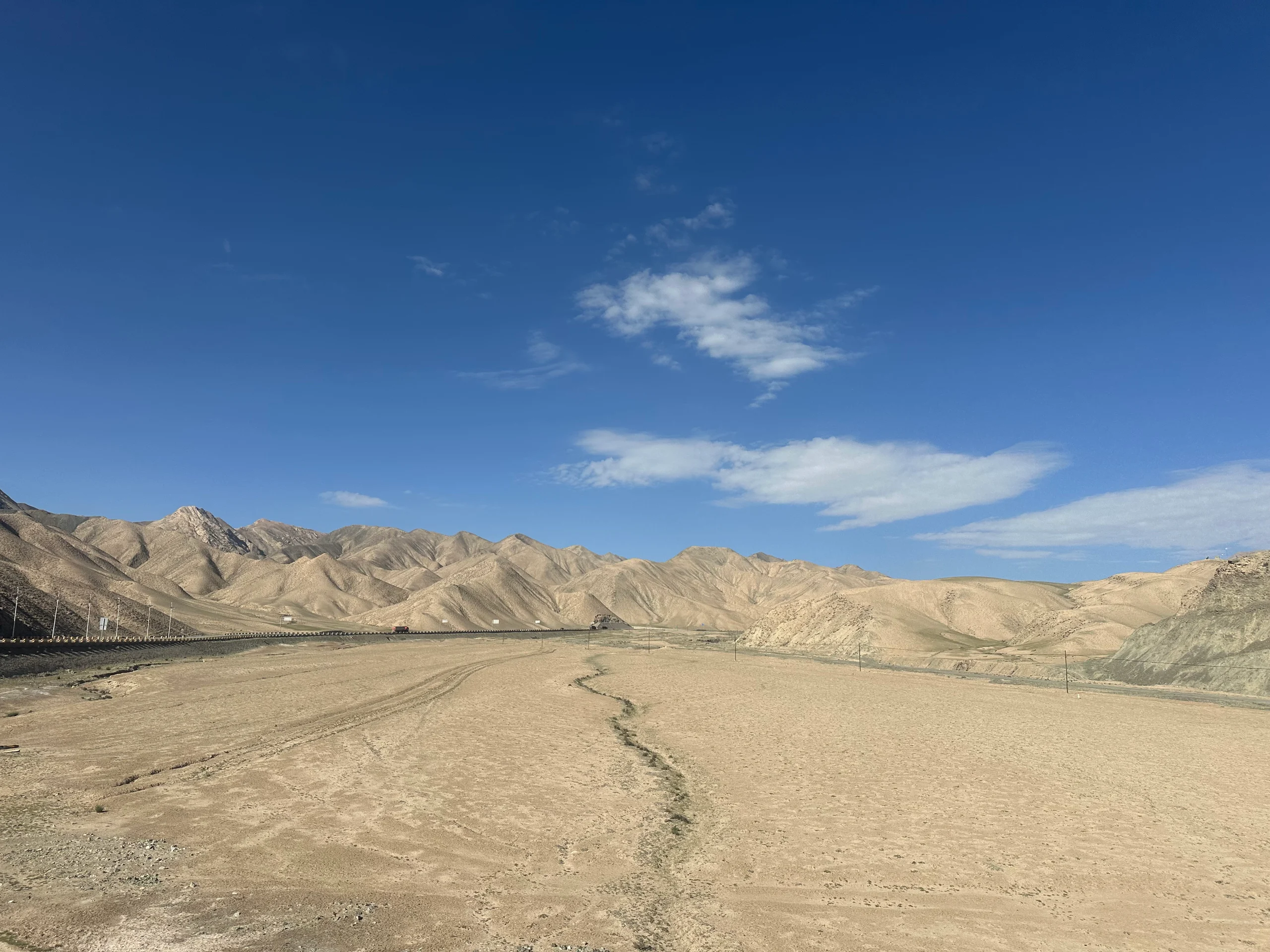 Trotzdem war es landschaftlich faszinierend: wüstenartige Hochebenen, weite Sicht, vereinzelt Touristen, die die majestätischen Berge und Sandformationen am Straßenrand fotografierten. Ich dagegen schlängelte mich an mehreren Polizeicheckpoints vorbei, denn in der Qinghai-Region herrscht ein hohes Maß an Kontrolle.