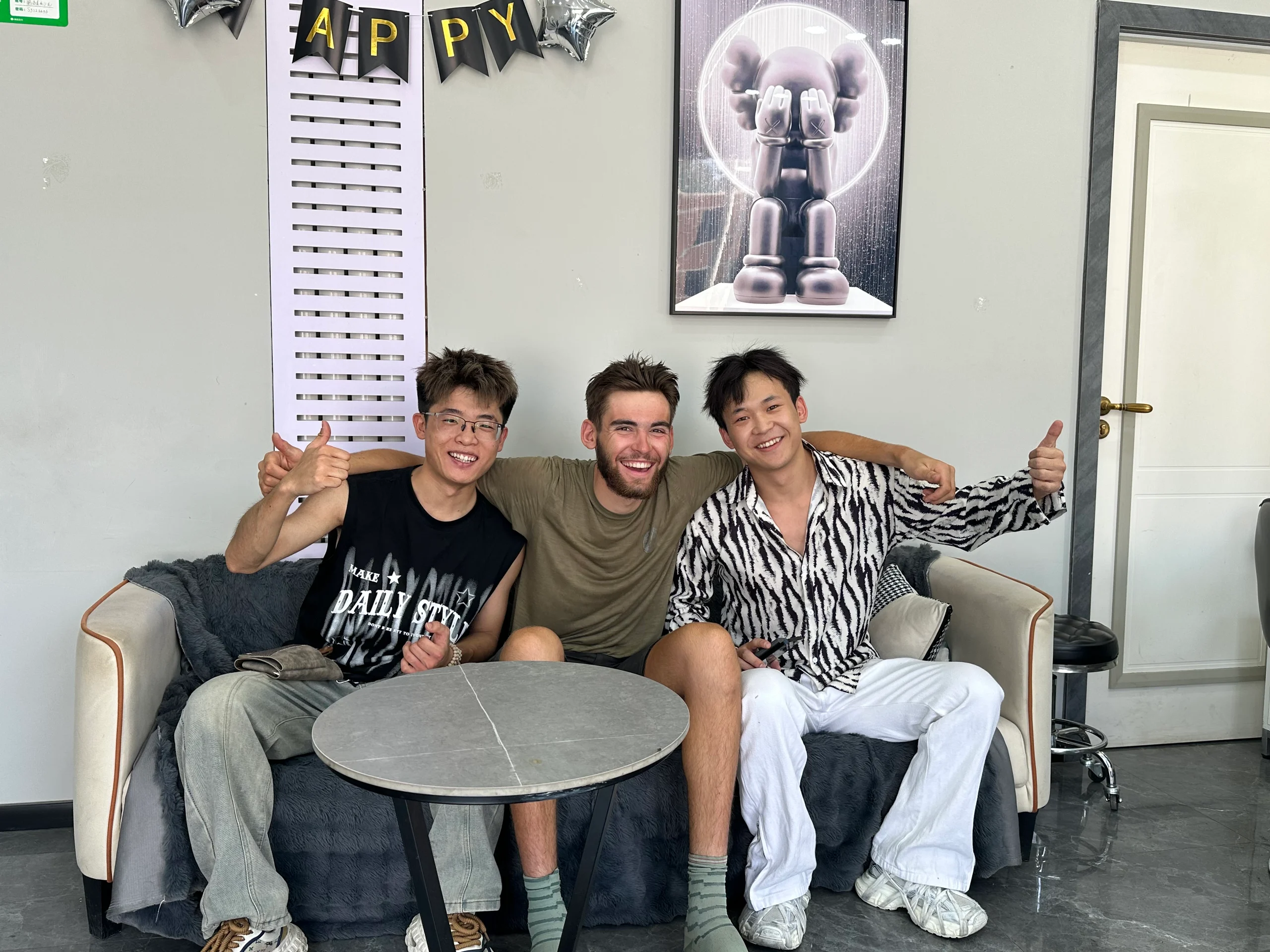 Der Laden gehörte drei jungen Leuten – zwei Friseuren und einer Friseurin, alle gerade einmal 24 Jahre alt. Es war leer, sodass ich sofort drankam. Während des Haarschnitts unterhielt ich mich mit den beiden Jungs per Translator-App. Irgendwann fragte ich sie, ob sie einen Massagesalon in der Nähe kennen. Die beiden brachten mich tatsächlich persönlich dorthin und übersetzten für mich.
