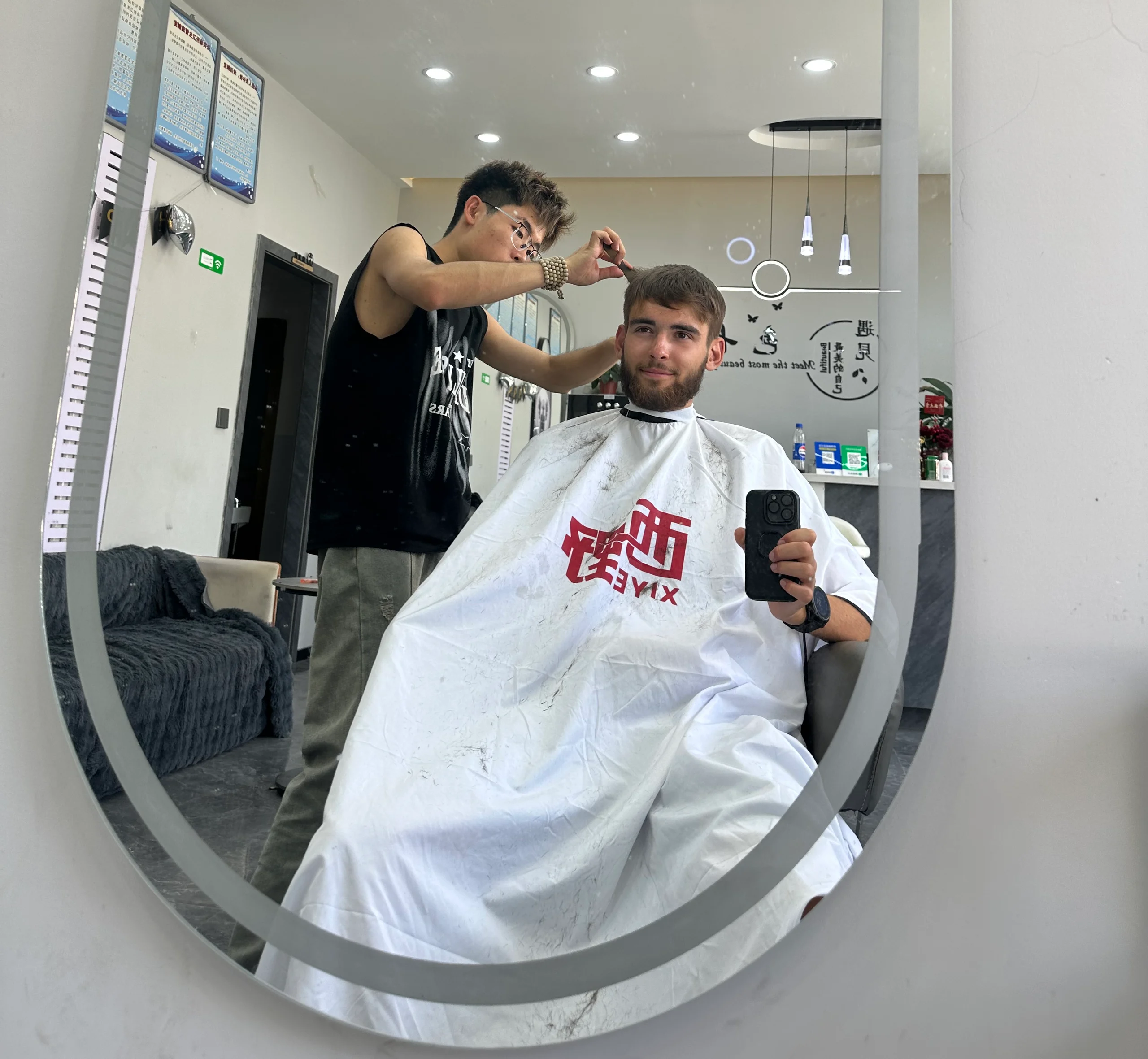 Mein heutiger Ruhetag begann entspannt: Am Morgen schnitt ich die letzten beiden Reels fertig und aktualisierte meinen Blog. Gegen Mittag machte ich mich zu Fuß auf in die Stadt und landete bei einem Friseur. Eigentlich wollte ich nicht nur meine Haare schneiden lassen, sondern auch meinen Bart stutzen. Doch da fast alle Chinesen entweder keinen Bart oder nur sehr wenig Bartwuchs haben, konnte der Friseur das leider nicht anbieten.