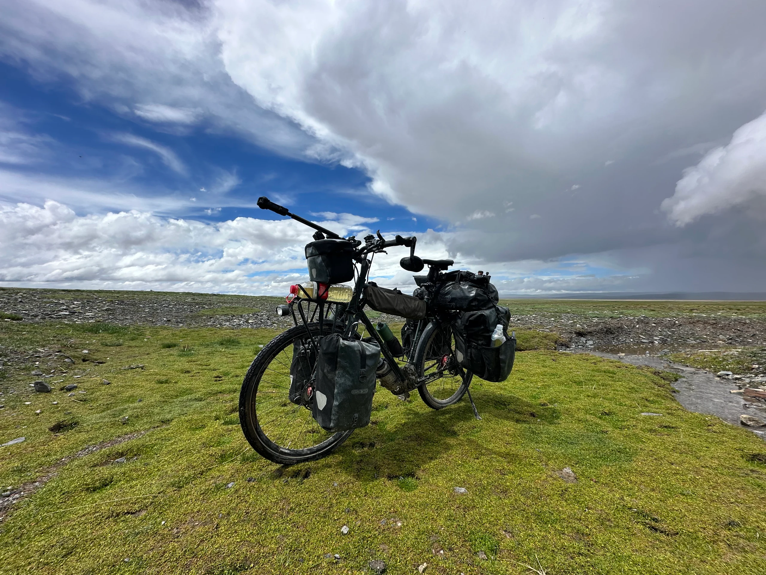 Am Morgen setzte ich meine Fahrt im leichten Regen fort. Ich verabschiedete mich von den überaus freundlichen Bauarbeitern, die mir am Vorabend eine trockene Unterkunft ermöglicht hatten. Schon kurz nach dem Start ging es mit kräftigem Gegenwind bergauf – der erste Pass lag auf 4.500 m und verlangte mir einiges ab.