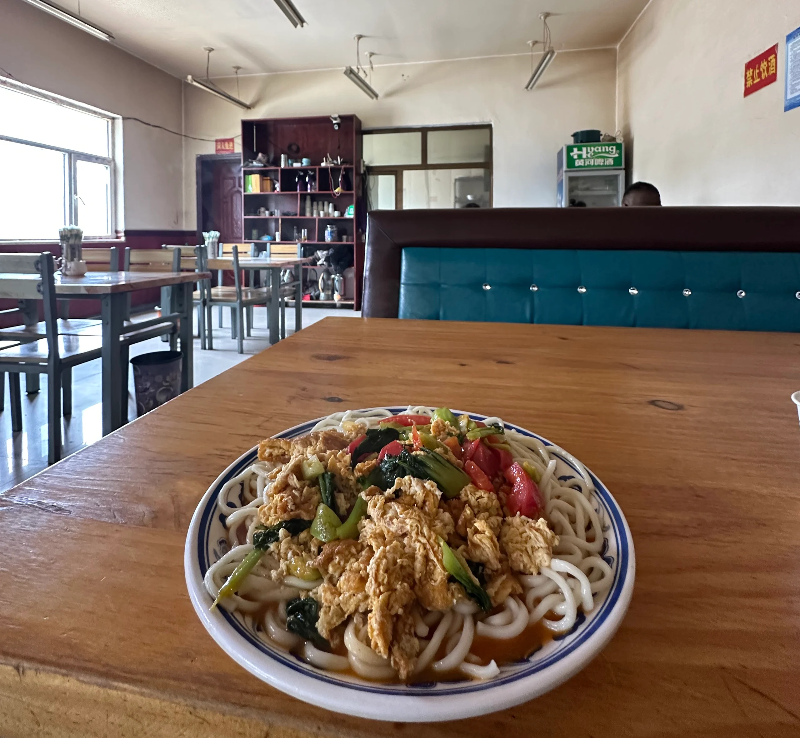 Am Morgen stand ich früh auf, packte meine Sachen, verabschiedete mich vom Besitzer der Unterkunft und füllte noch einmal meine Wasserflaschen auf. Bevor ich das Dorf verließ, machte ich noch einen Abstecher zum Supermarkt, um meine Essensvorräte aufzustocken – schließlich lagen rund 150 km vor mir, in denen es so gut wie keine Versorgungsmöglichkeiten geben würde.