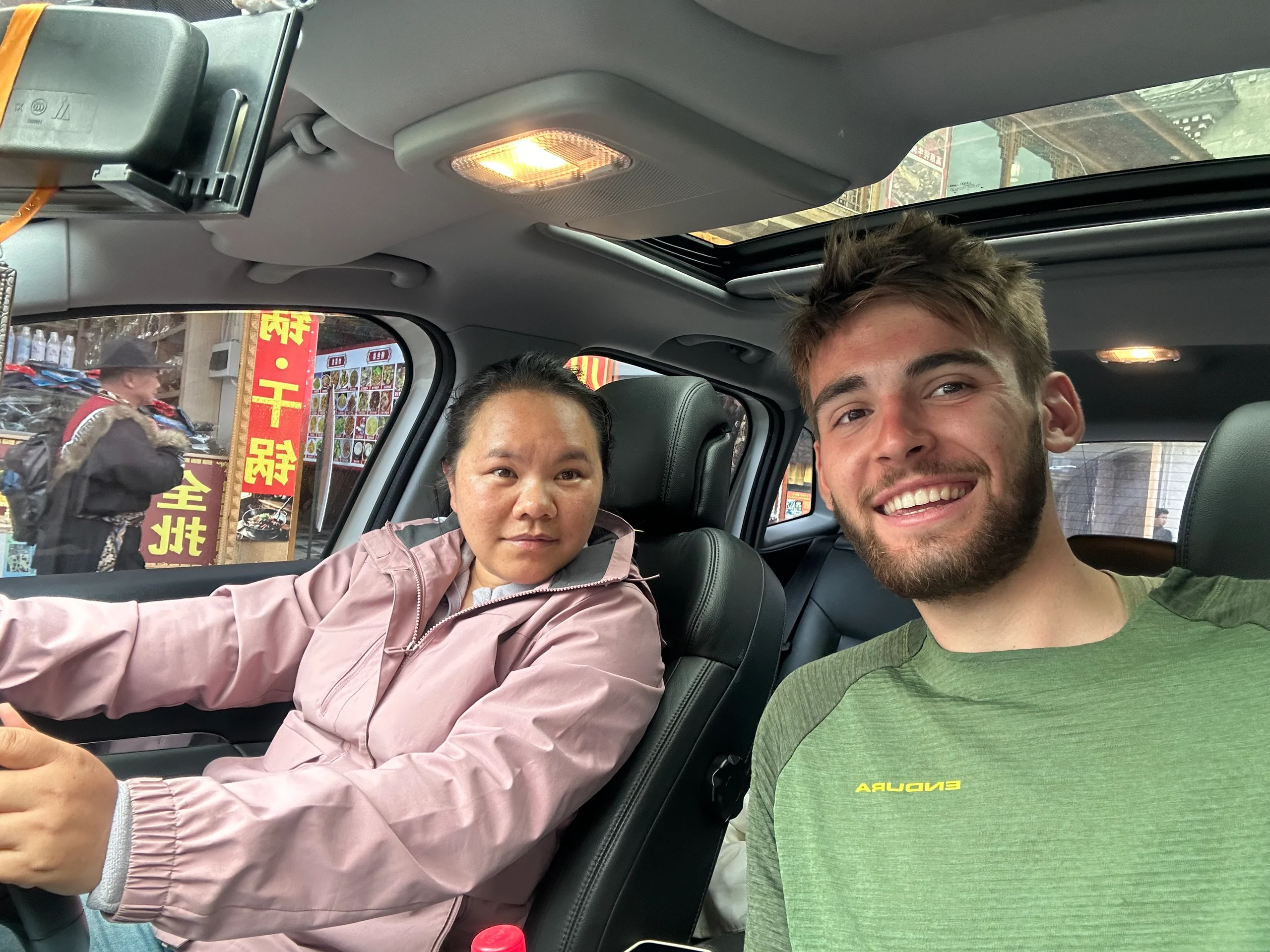Nach einer Viertelstunde hielt eine Freundesgruppe, die mich mitnahm. Bevor es zurück nach Shangri-La ging, wollten sie allerdings noch Pilze sammeln. Ich begleitete sie und genoss die frische Landschaft, auch wenn das Gebiet anscheinend schon stark abgesucht war und sie nichts fanden. Zum Glück hatten sie noch Vorräte von einer anderen Tour. Schließlich nahmen sie mich zurück in die Stadt mit, und wir führten auf der Fahrt noch sehr nette Gespräche.