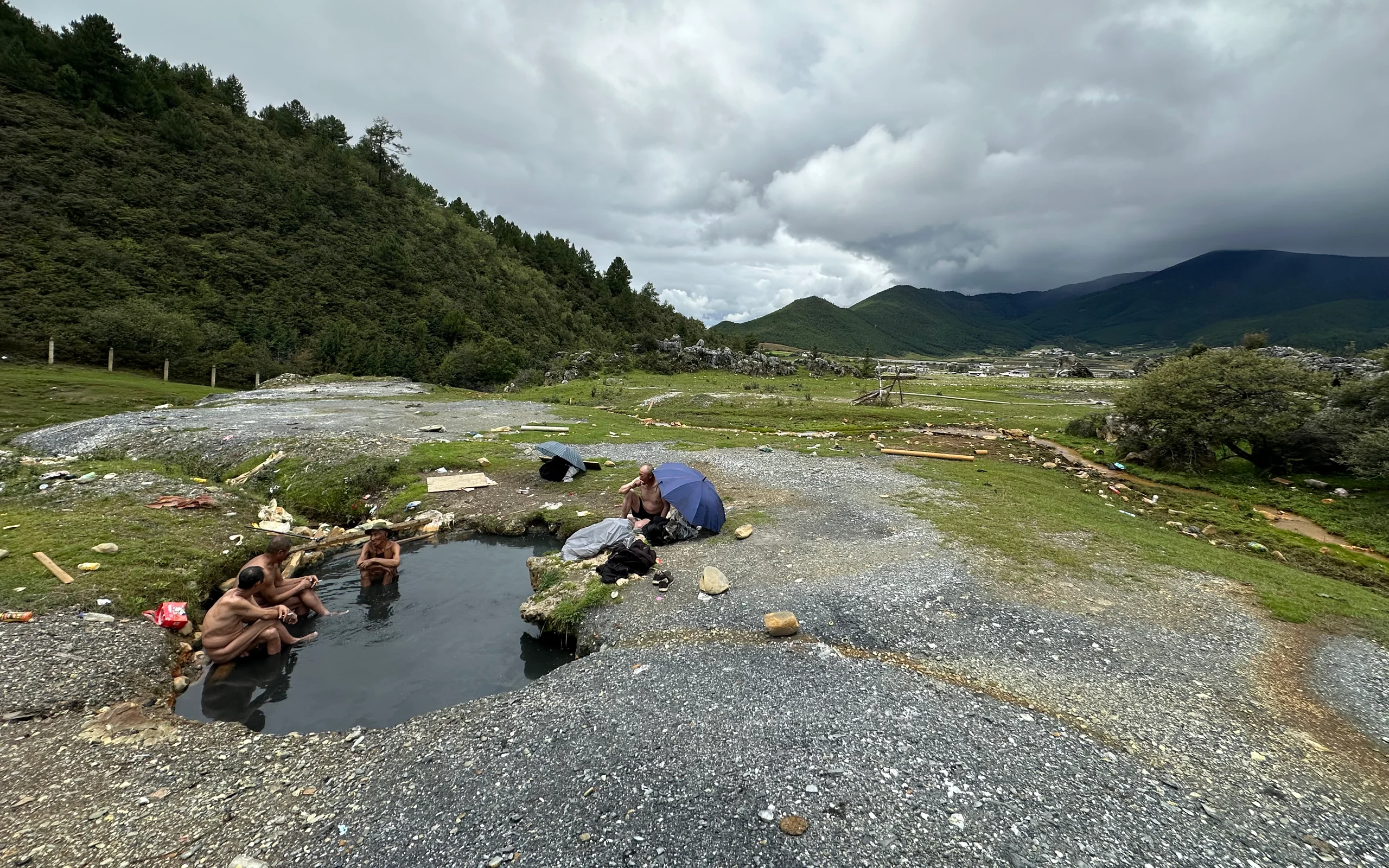 Zu meiner Überraschung waren dort keine Touristen. Lediglich vier ältere Herren saßen entspannt im warmen Wasser. Vom Parkplatz führte ein kleiner Anstieg bis zur Quelle, die ich schließlich erreichte. Das Wasser war wohltuend warm, allerdings war die Quelle selbst sehr schlammig, sodass meine Haut jedes Mal mit schwarzem Schlamm bedeckt war, sobald ich aus dem Wasser stieg. Trotzdem genoss ich die entspannte Atmosphäre – besonders, als es zu regnen begann und die Tropfen im heißen Wasser aufschlugen. Mit dem Blick auf die umliegenden Berge wirkte der Moment fast magisch.
