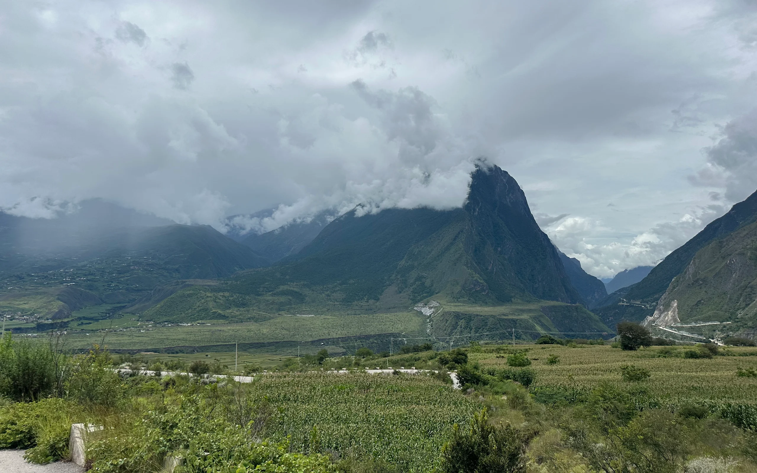 Oben angekommen folgte die lange Abfahrt hinunter nach Lijiang. Die rasante Fahrt ins Tal tat unglaublich gut. In der großen, aber sehr touristischen Stadt hielt ich mich nicht lange auf, aß lediglich zu Mittag und setzte meinen Weg fort. Mehrere Hügel lagen noch zwischen mir und der letzten Stadt vor dem nächsten großen Anstieg. Eigentlich wollte ich dort zelten, doch genau als ich nach einem Platz suchte, setzte starker Regen ein – und der Wetterbericht kündigte Dauerregen bis zum nächsten Tag an. Also machte ich mich auf die Suche nach einem günstigen Hotel. Nach einigem Umherirren fand ich schließlich ein Zimmer für 55 Yuan, umgerechnet etwa sechs Euro – ein sehr fairer Preis.