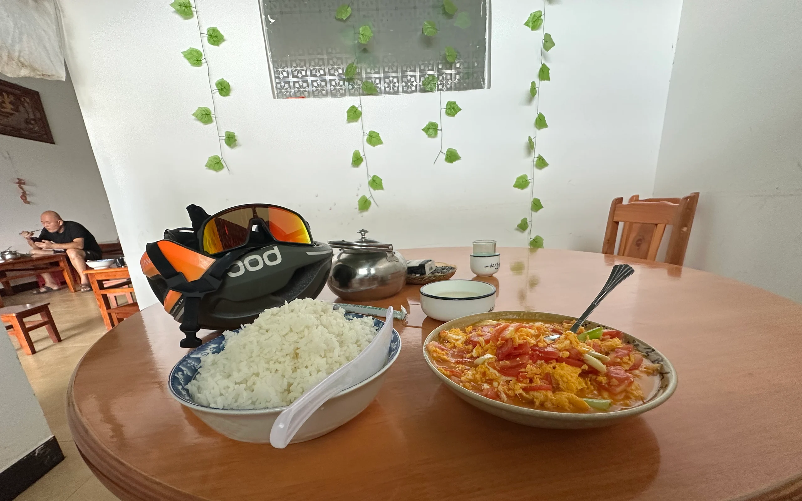 Hinter Kunming führte mein Weg über mehrere Hügel und entlang großer Seen. Ich kam gut voran und legte meine erste Pause erst nach 90 Kilometern ein. Zum Mittag gab es wieder Reis mit Ei und Tomate – meine Lieblingskombination, die mich zuverlässig mit Energie versorgt.