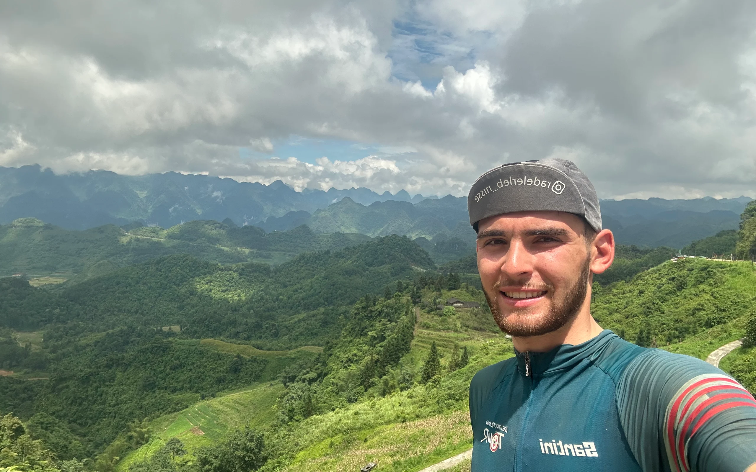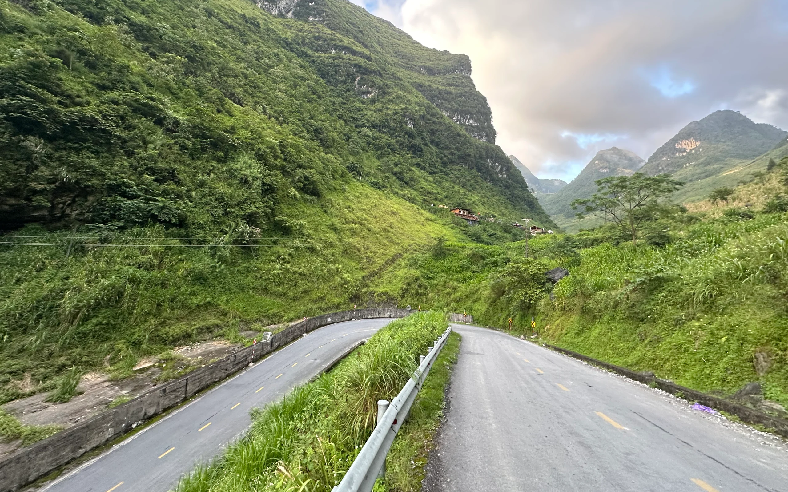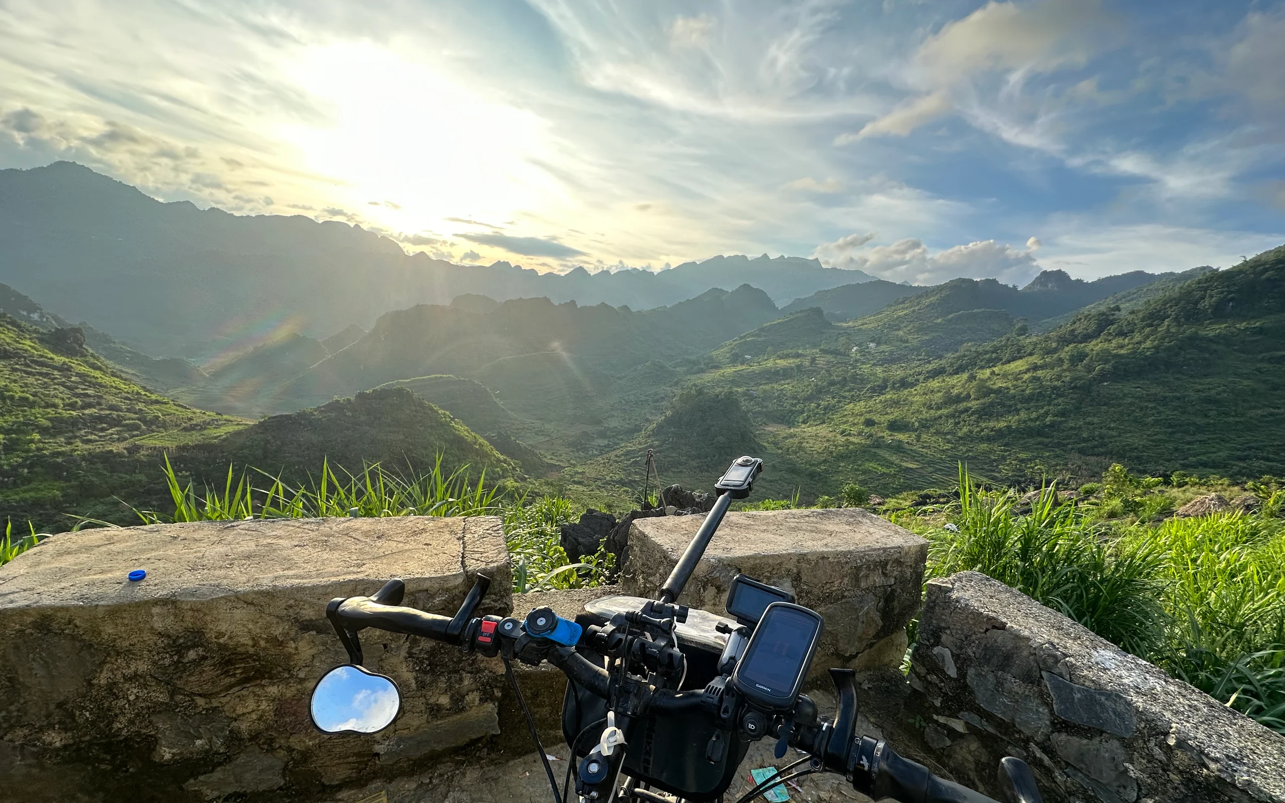 Der Beginn der Strecke war noch relativ flach, doch das änderte sich schnell am ersten Anstieg: von 100 Metern in Ha Giang ging es bis auf 1.150 Meter hinauf. Unzählige Serpentinen mit einer konstanten Steigung von über 10 % führten durch den Dschungel. Immer wieder überholten mich die gleichen Motorradgruppen, die mich anfeuerten und feierten, was ich da tat. Da sie öfter Pausen machten, holte ich sie jedes Mal wieder ein – so kannten wir uns bald gegenseitig. Und ehrlich gesagt: ich verstehe gut, warum 99,9 % der Leute hier mit dem Roller fahren. Die Anstiege sind brutal.