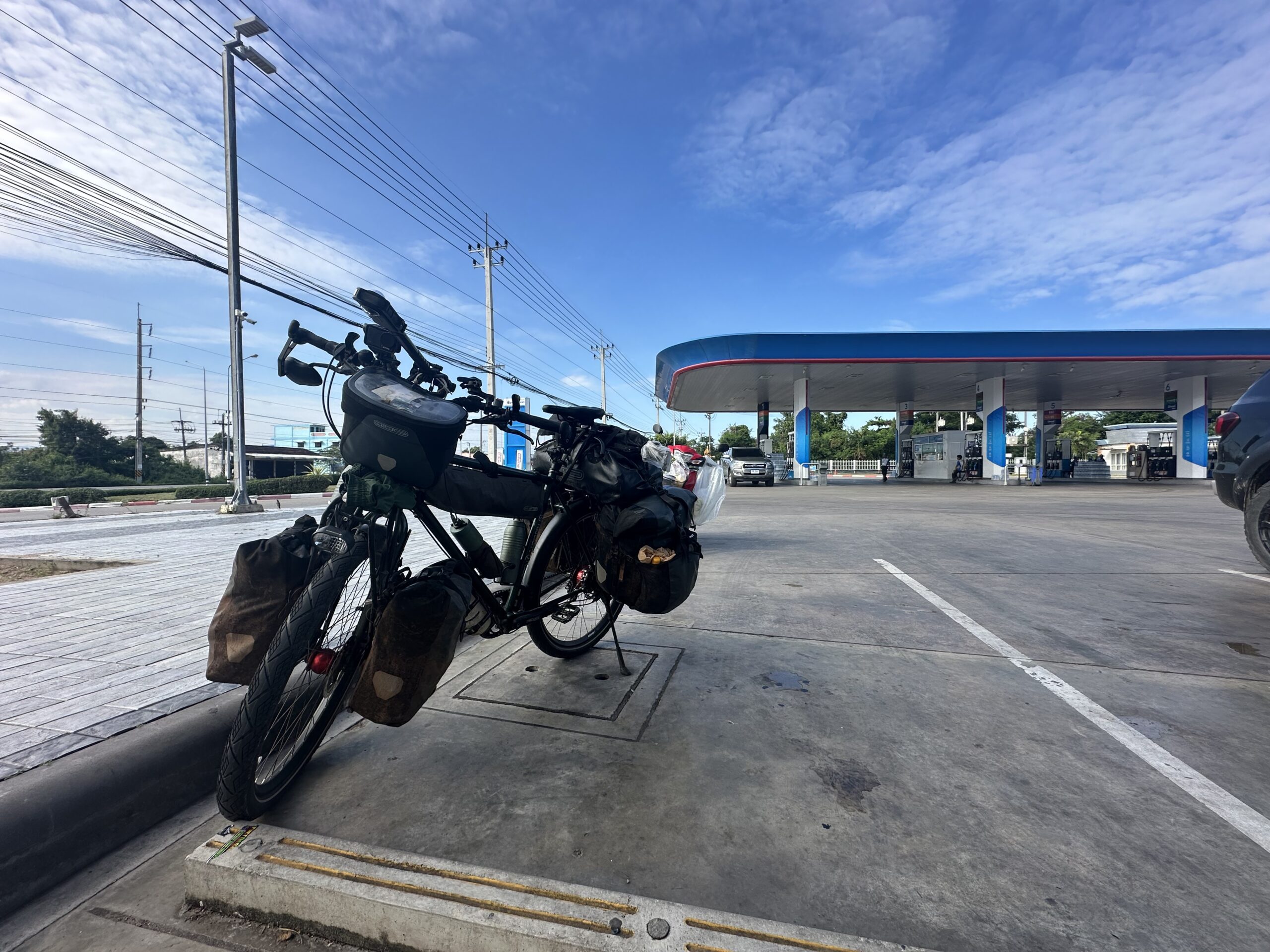 Ich suchte direkt auf der Karte nach einem Fahrradladen und fand einen etwa 15 Kilometer entfernt. Um dorthin zu kommen, gab ich etwas Kettenöl ins Lager, damit es wenigstens provisorisch weiterlaufen konnte. Zum Glück funktionierte das – und ich erreichte den kleinen Fahrradladen ohne größere Probleme.