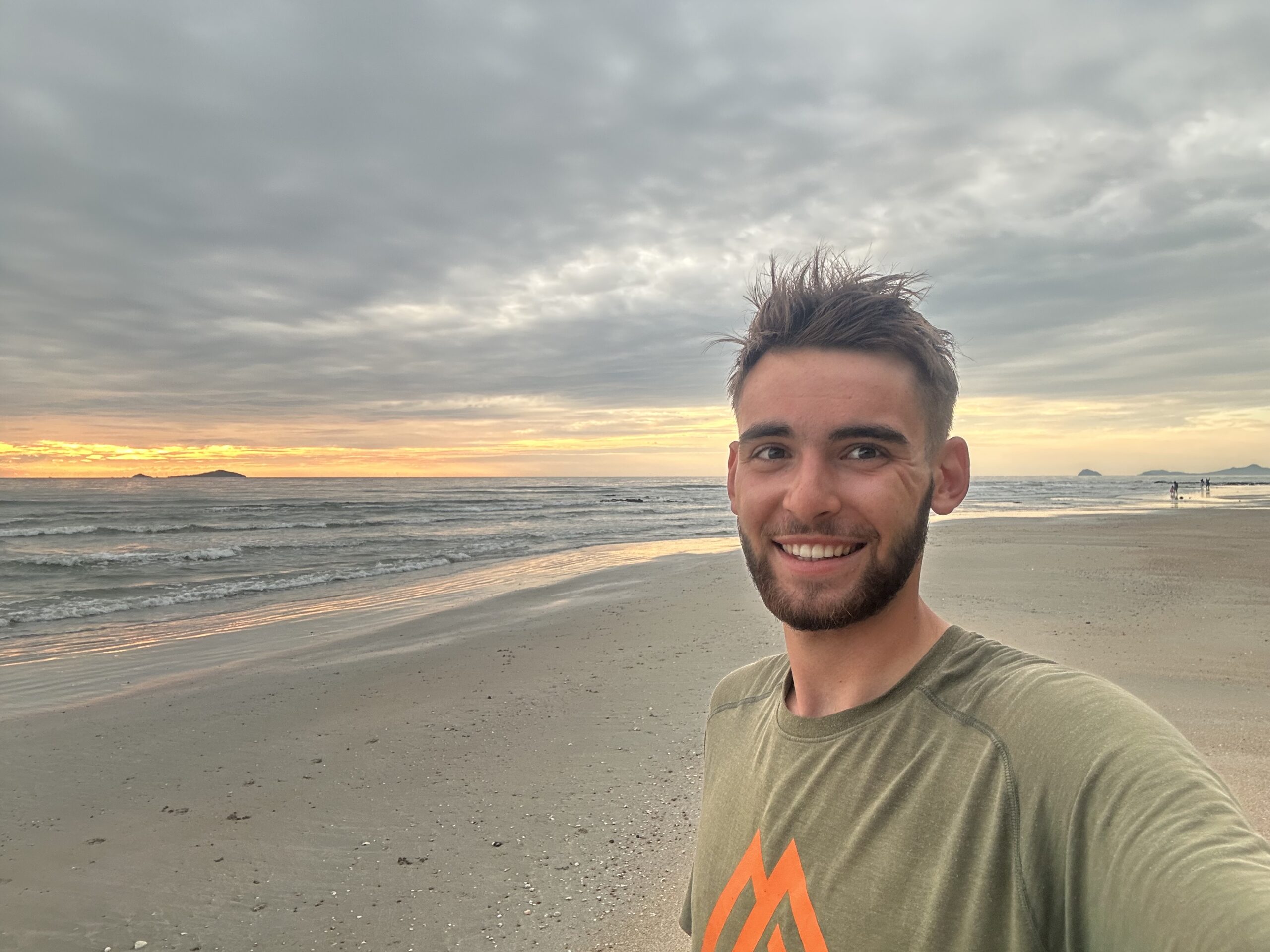 Ich genoss den Sonnenuntergang im Meer, setzte mich danach im Dunkeln an den Strand und machte wie immer meine Abendroutine: etwas dehnen, Salben auftragen, ein paar Nüsse essen und dabei meine Kurzvideos schneiden sowie diesen Tagebucheintrag schreiben.