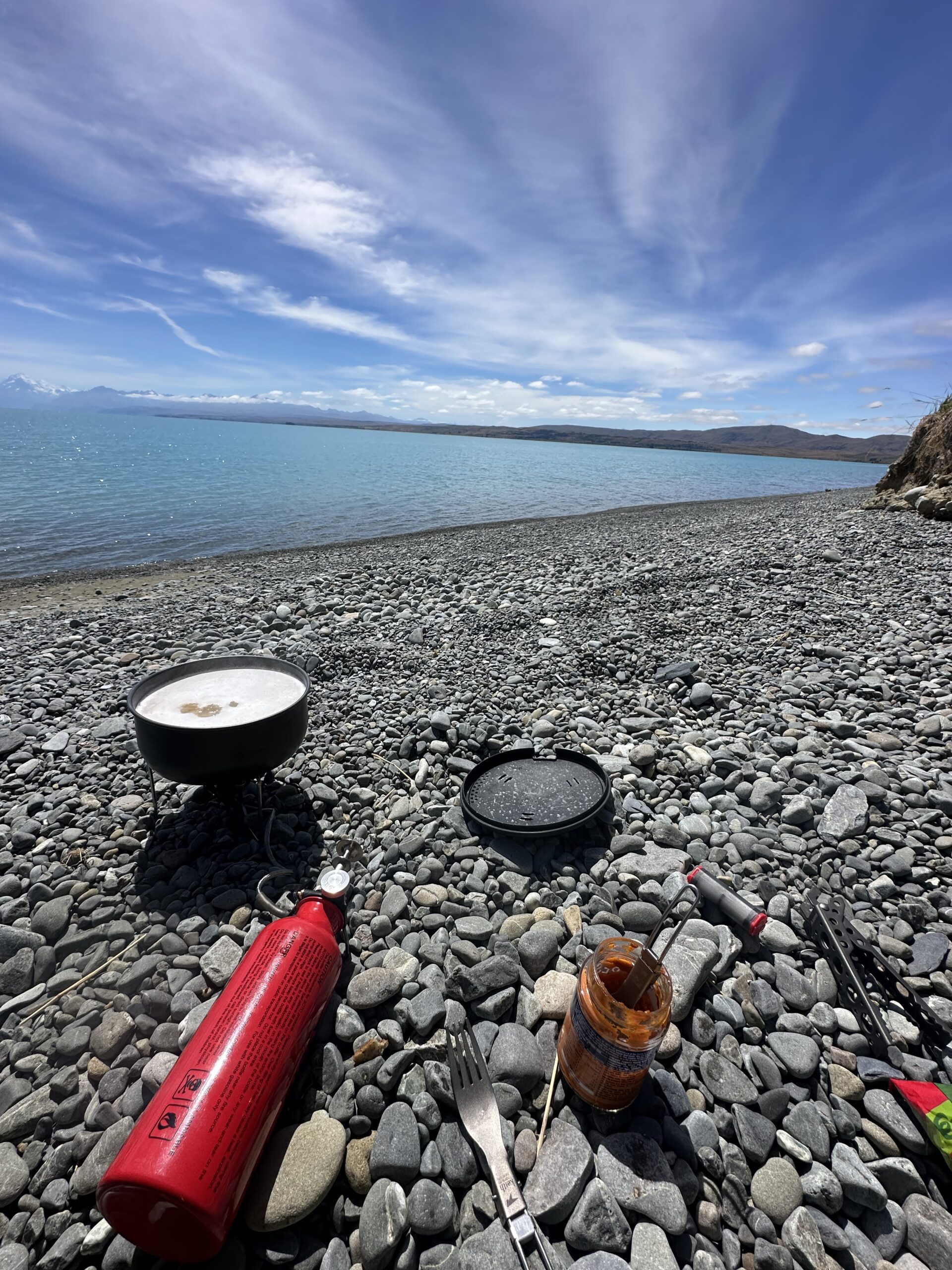 Am Abend kochte ich mir erneut Nudeln. Ich hatte keine Lust, noch bis zum nächsten Supermarkt zu fahren – und außerdem wollte ich mir die zweite Nacht direkt mit Blick auf den Mount Cook nicht entgehen lassen. Unter freiem Himmel, umgeben von dieser beeindruckenden Szenerie, klang der Tag ruhig und zufrieden aus.
