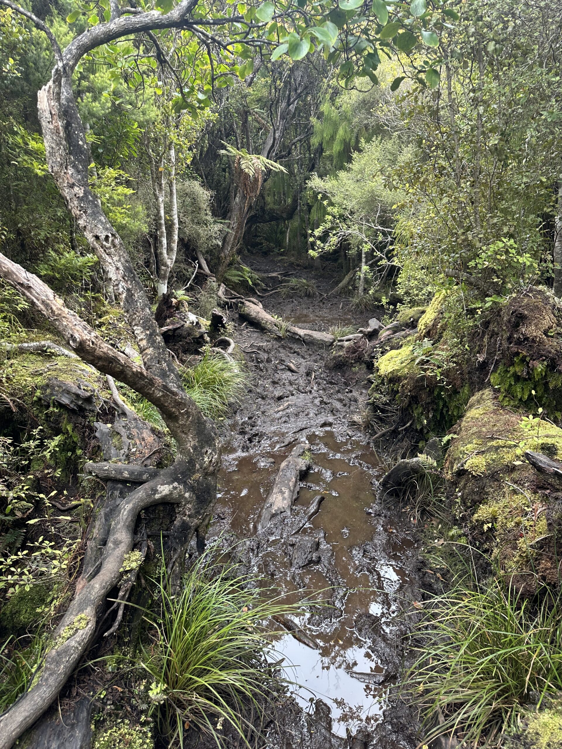 Der Weg schlängelte sich durch malerische Wälder und war auf den ersten rund 15 Kilometern noch gut zu gehen. Doch danach wurde es zunehmend matschig – und das nicht nur für ein paar hundert Meter. Über mehr als zehn Kilometer hinweg waren viele Passagen so aufgeweicht, dass man links und rechts durch das Gebüsch ausweichen musste, um nicht knietief im Schlamm zu versinken. Diese Bedingungen forderten enorm viel Kraft und Konzentration.
