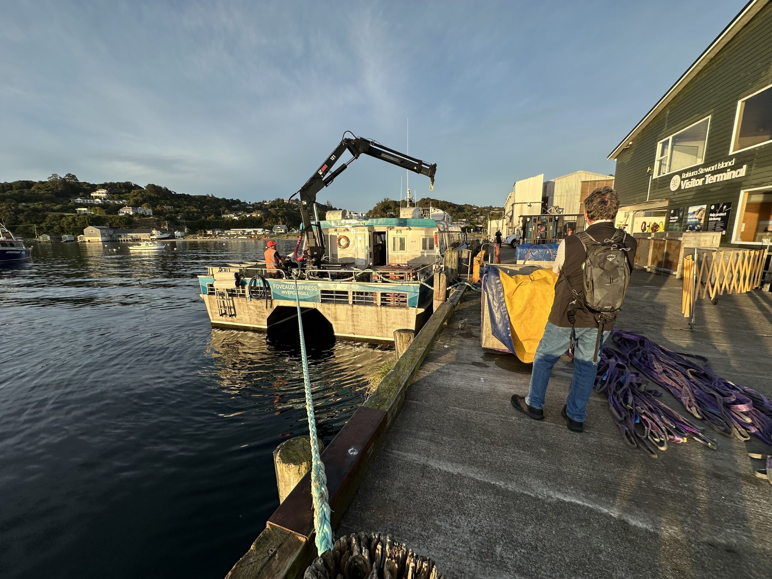 Gegen 7:40 Uhr erreichte ich den Fähranleger, checkte mein Gepäck ein und übergab mein Fahrrad der Crew, die es sorgfältig im Boot verzurrte. Noch etwas müde von der kurzen Nacht begann die Überfahrt.