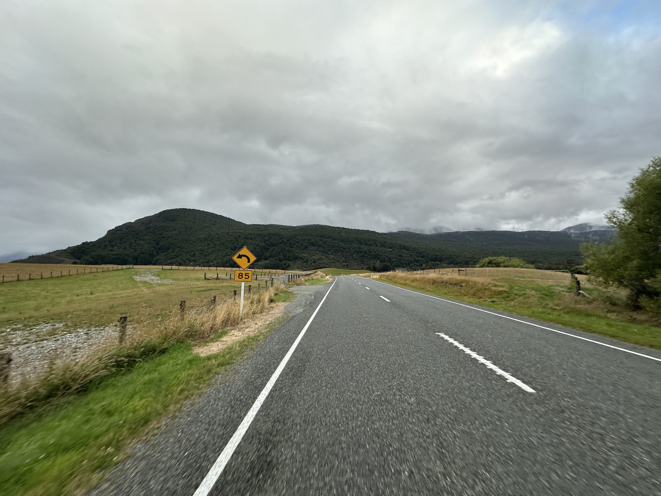 Am Morgen wachte ich ausgeschlafen auf, denn bis 10:30 Uhr war noch Regen angekündigt. Daher entschied ich mich bewusst, nicht im Nassen zu starten, sondern den Beginn meiner Etappe etwas zu verschieben. Nach einem kleinen Frühstück verabschiedete ich mich von Ewen und machte mich nach dem Ende des Regens auf den Weg Richtung Fjordland.