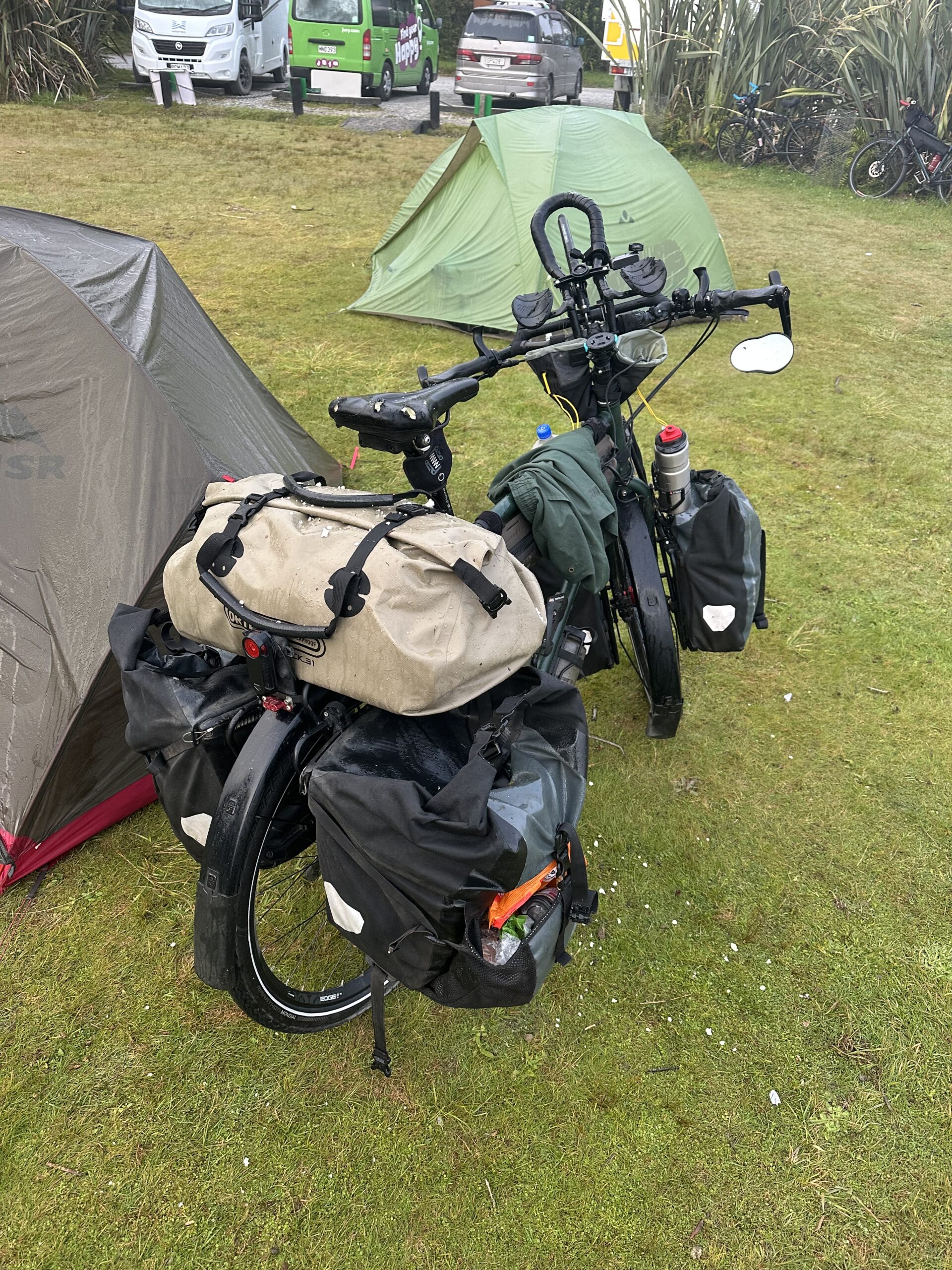 Am frühen Nachmittag erreichte ich schließlich einen Campingplatz im Ort Franz Josef. Dort baute ich mein Zelt auf, erledigte noch einige Einkäufe für den bevorstehenden Pausetag und versuchte herauszufinden, wie ich einen neuen Sattel desselben Modells organisieren könnte.
