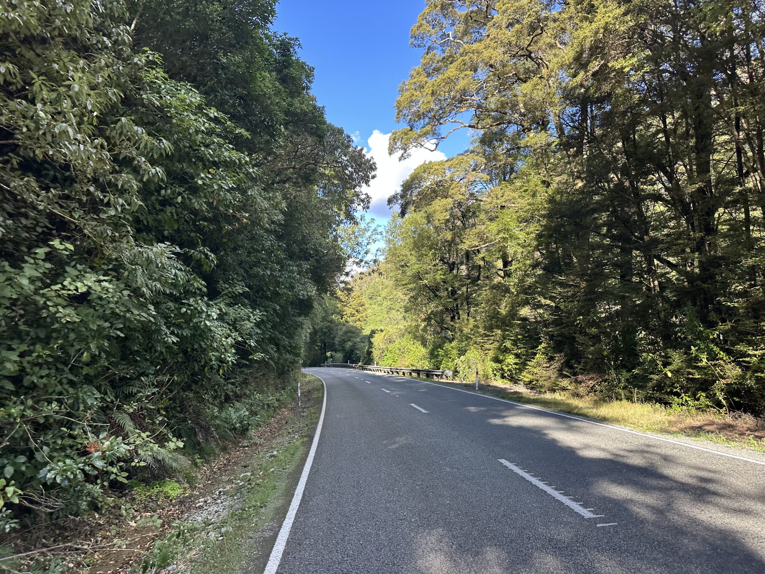 Allerdings brachte auch diese Strecke ihre eigenen Gefahren mit sich: dichter Verkehr, große Lastwagen und Touristen mit Campern, die teilweise sehr dicht an mir vorbeifuhren. Ein großes Problem in Neuseeland ist, dass viele Straßen keinen Seitenstreifen haben. Dadurch empfinde ich dieses Land im Hinblick auf den Autoverkehr bisher als das gefährlichste meiner gesamten Reise.