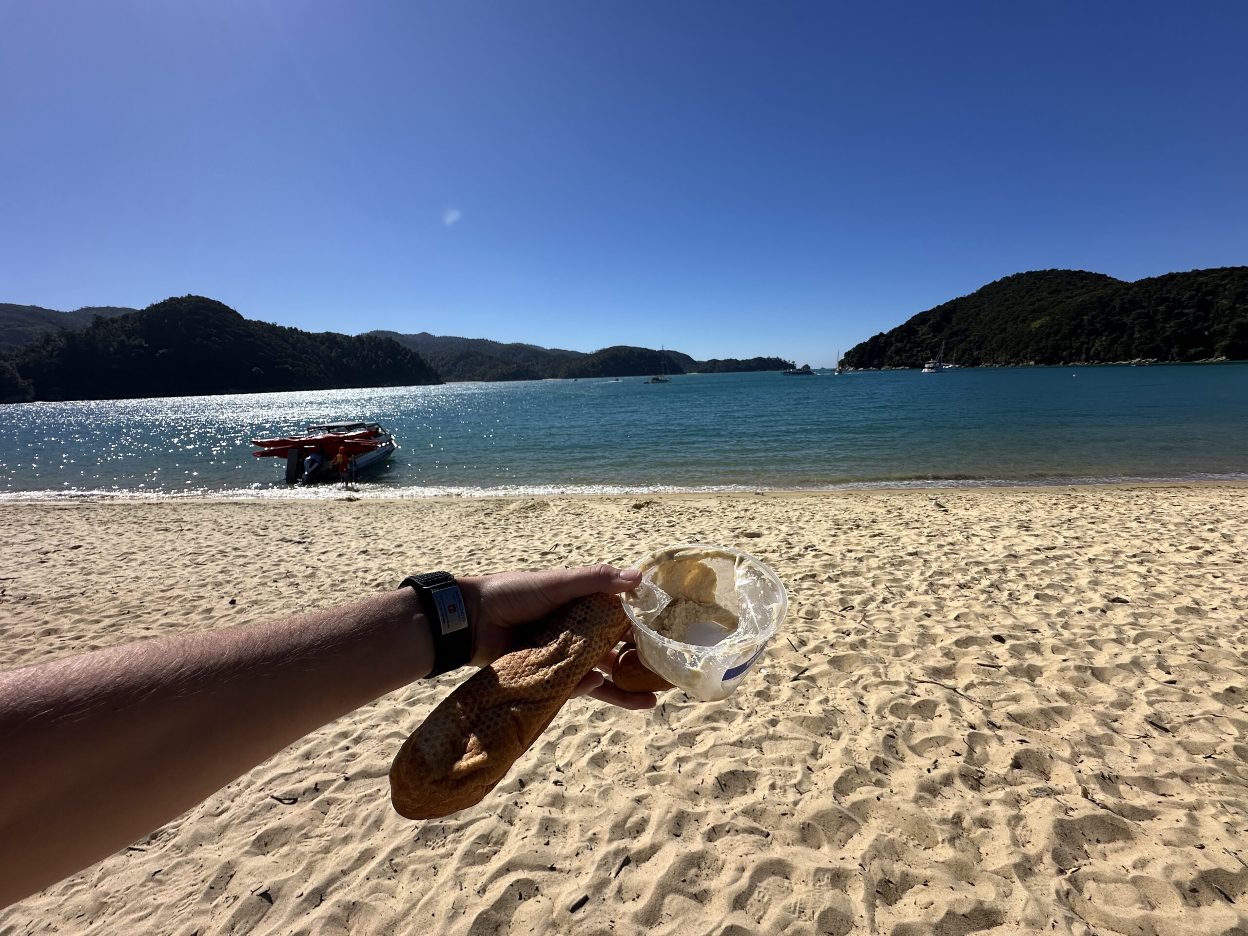 Anschließend paddelten wir weiter entlang der Küste des Nationalparks bis zur Torrent Bay. Dort gaben wir am Nachmittag unsere Kajaks zurück, zogen uns um und machten uns noch auf eine etwa 15 Kilometer lange Wanderung zurück zu unserem Camper.