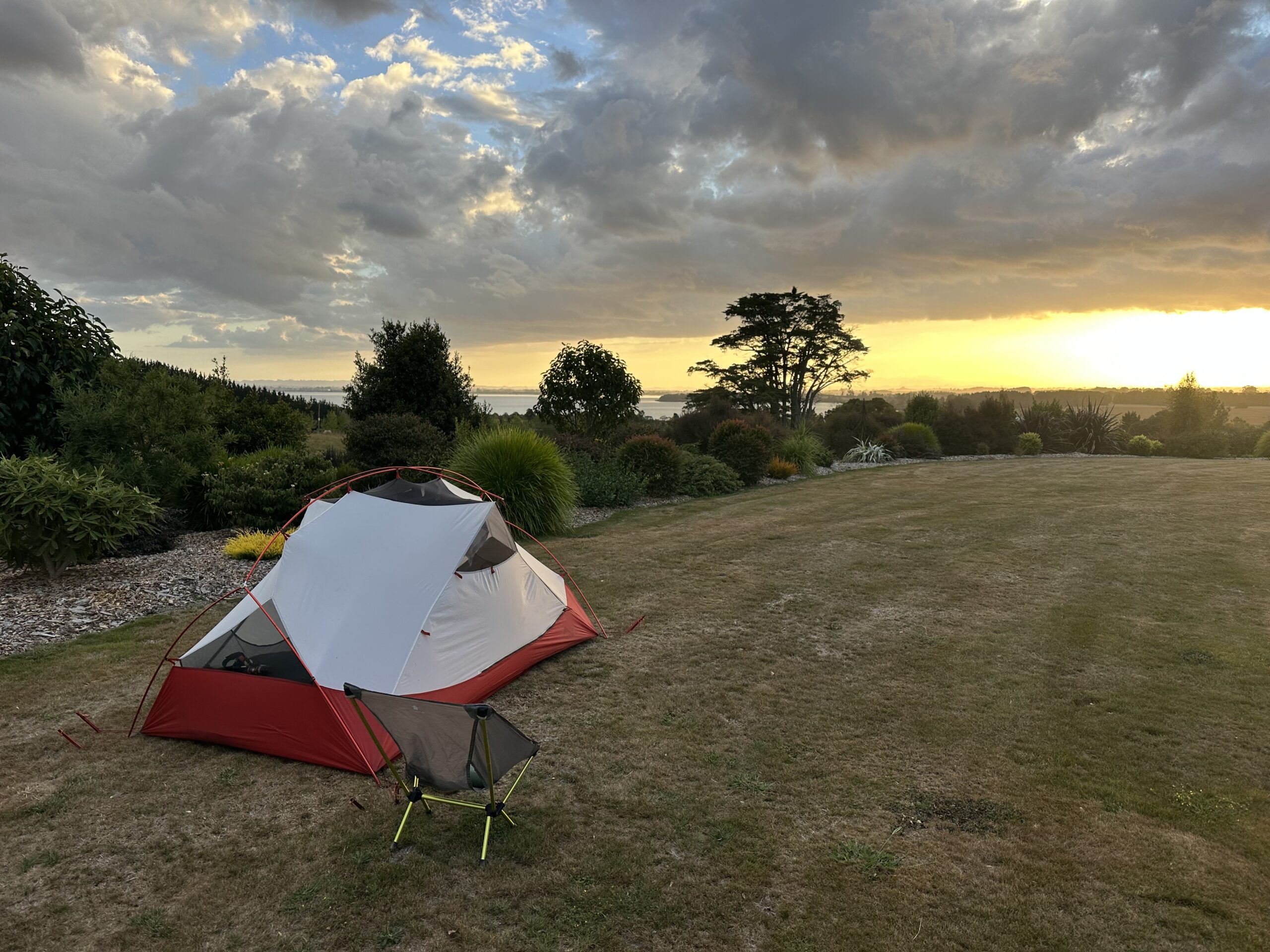 Mein Ziel für den Abend war der Lake Waikare. Auf den ersten Blick schien er ein perfekter Ort zum Zelten zu sein – mit Möglichkeiten zum Baden und Wasserfiltern. Nach kurzer Recherche stellte sich jedoch heraus, dass das Wasser durch Algen, Bakterien und Düngereinträge belastet ist. Somit fiel dieser Plan leider weg.