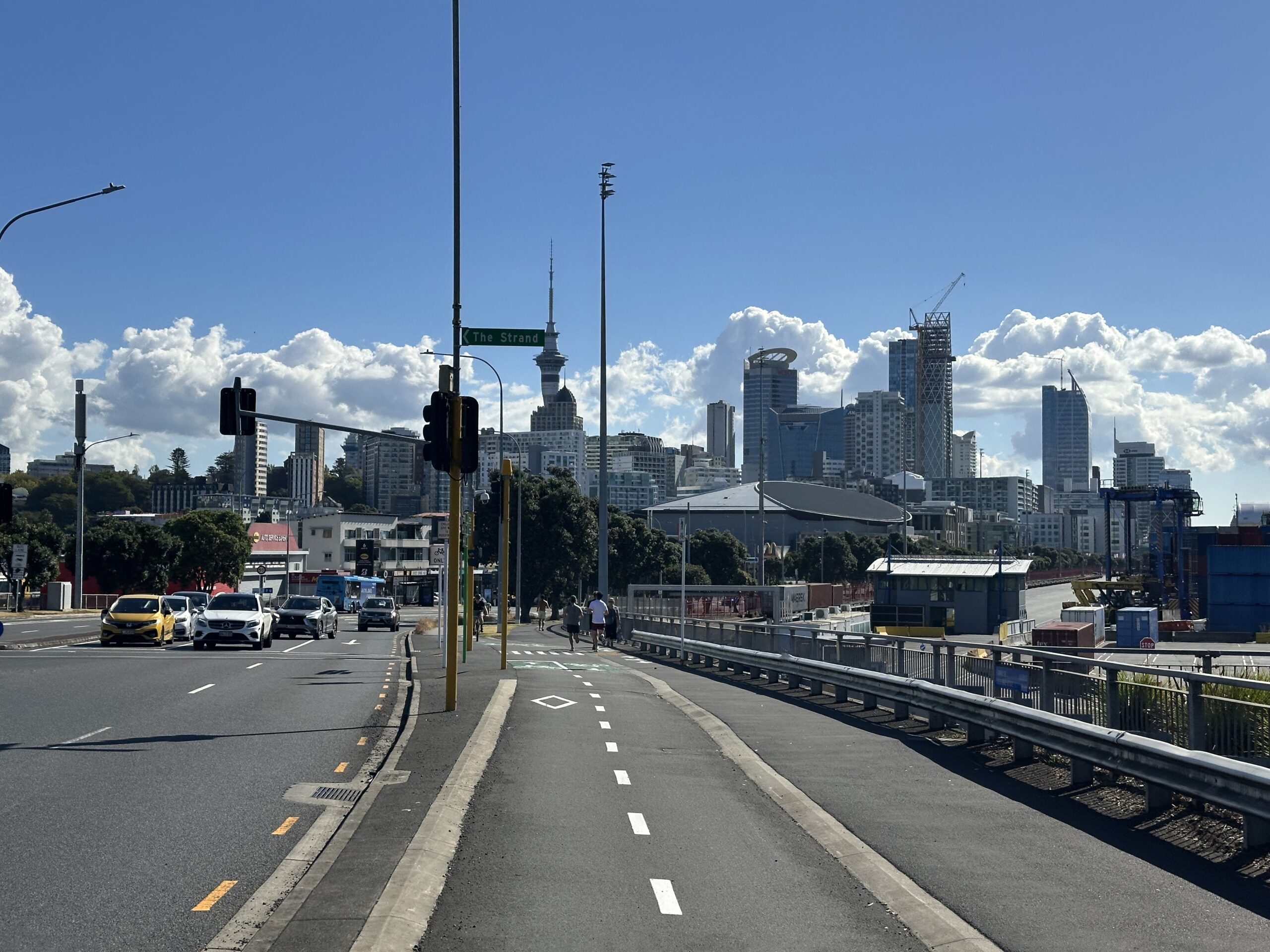 Irgendwann erreichte ich schließlich die ersten Vororte von Auckland. Der Verkehr nahm deutlich zu, und die Fahrradinfrastruktur war zunächst kaum vorhanden. Erst etwa 10 Kilometer vor dem Stadtzentrum wurde es besser: gut ausgebaute Radwege, Holzstege und klar markierte Strecken erleichterten die letzten Kilometer erheblich.