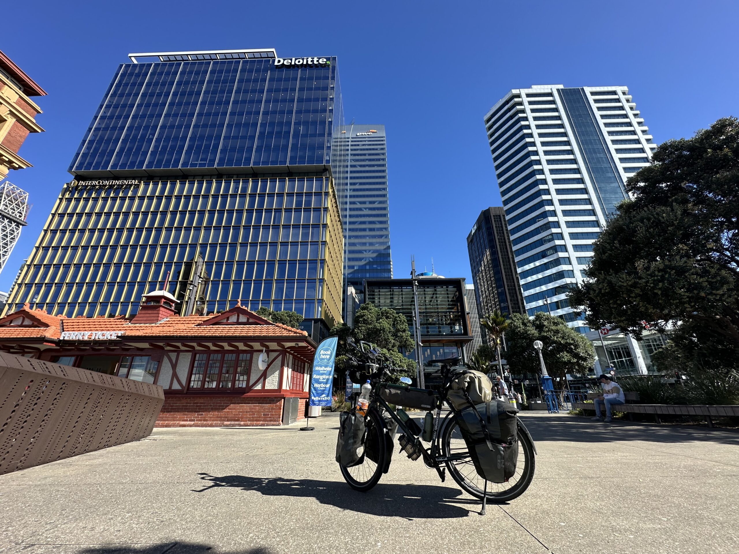 Nach rund 110 Kilometern erreichte ich schließlich das Zentrum am Viaduct Harbour. Dort genoss ich den Blick auf das Wasser und die Skyline – ein besonderer Moment nach dieser langen Reise.