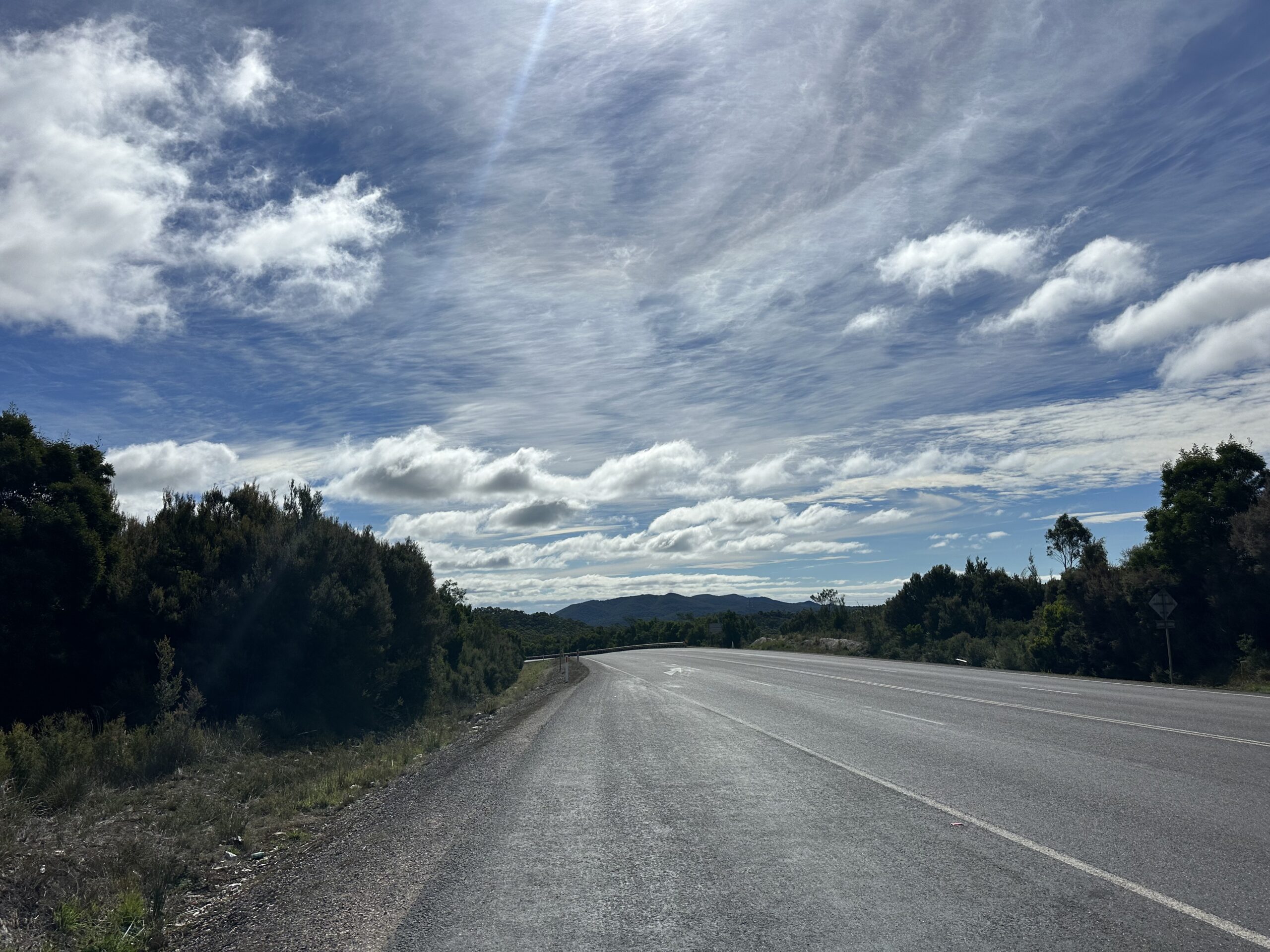 Doch mit der Zeit wurde der Gegenwind immer stärker. Jeder Kilometer wurde anstrengender, und die Kräfte ließen spürbar nach. Dennoch hatte ich mir vorgenommen, bis nach Smithton zu kommen – insgesamt rund 140 Kilometer. Stück für Stück kämpfte ich mich durch den Wind, über kleinere Hügel und entlang der Küstenlinie, bis ich schließlich mein Ziel erreichte.
