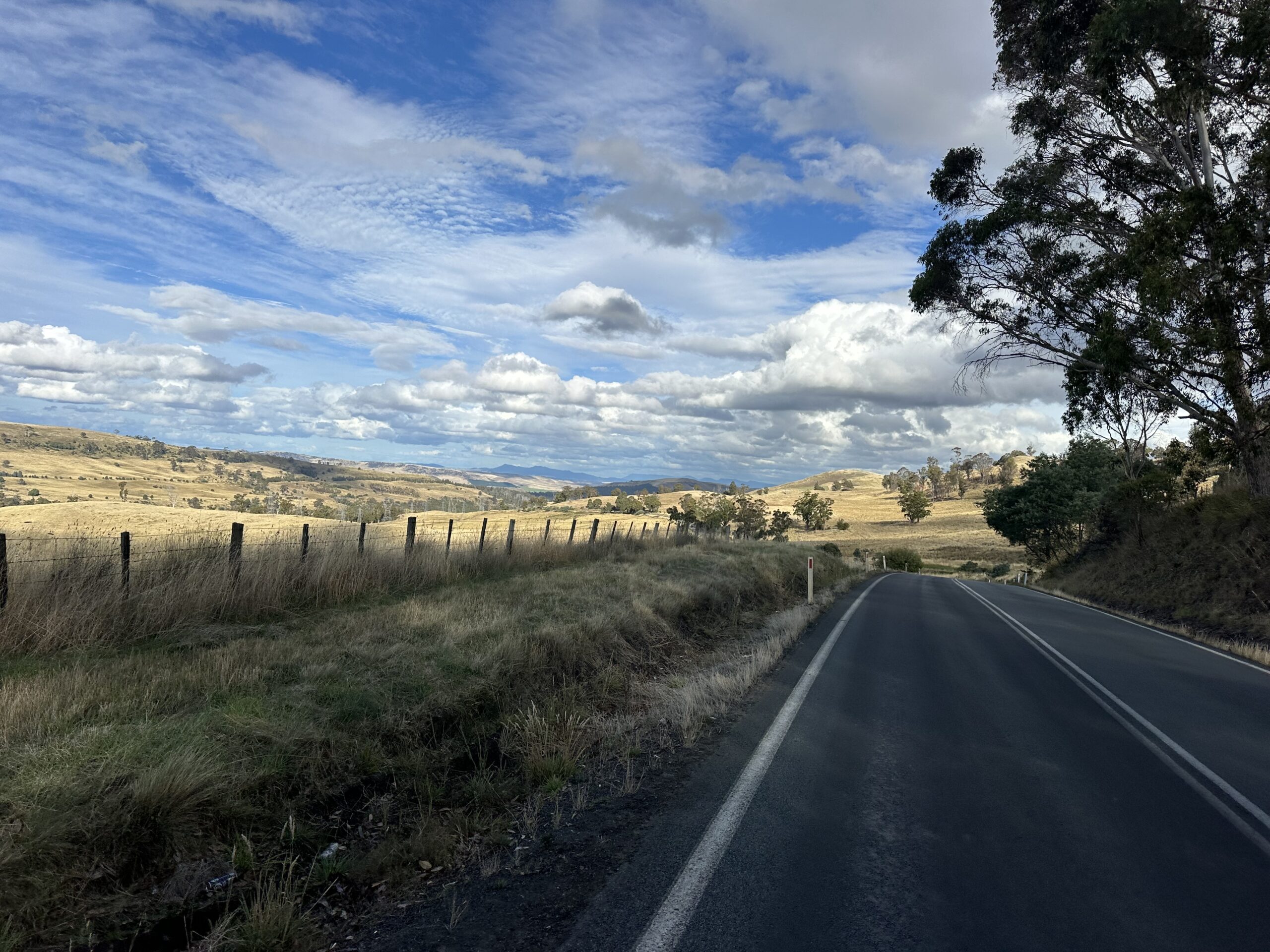 Kurz darauf erreichte ich eine deutlich stärker befahrene Straße, die als wichtige Nord-Süd-Verbindung zwischen Devonport und Hobart dient. Entsprechend nahm der Verkehr spürbar zu.