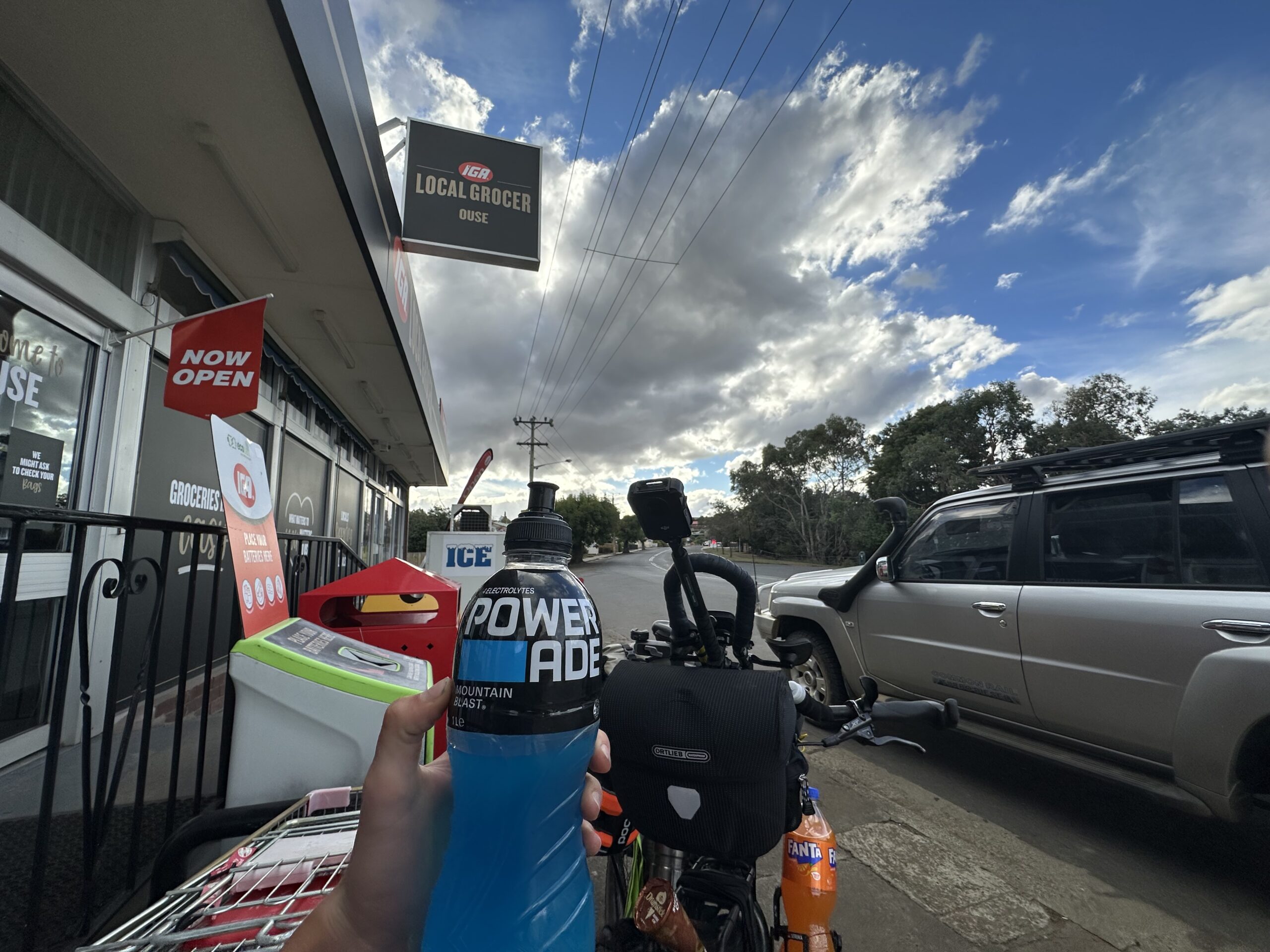 Nach einigen weiteren Kilometern kam ich in Ouse an – der erste Ort nach der langen, abgeschiedenen Strecke durch die Natur. Dort gönnte ich mir zur Belohnung ein Eis und eine Powerade. Anschließend kaufte ich noch Proviant für den Abend und den nächsten halben Tag ein.