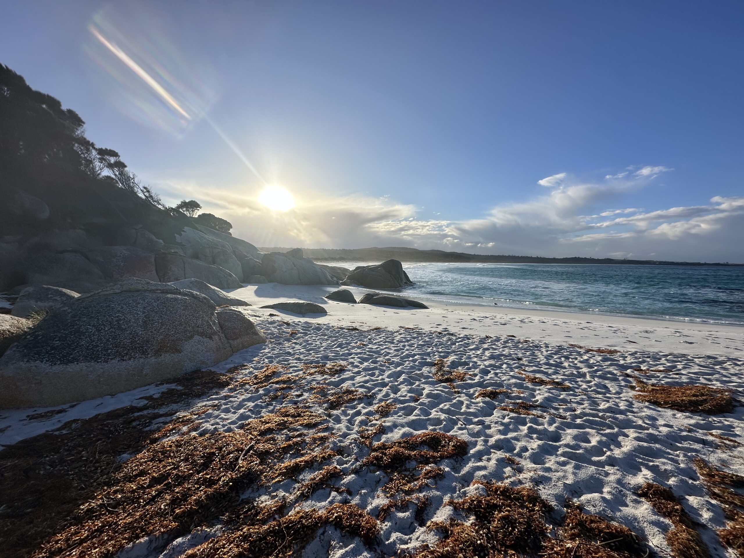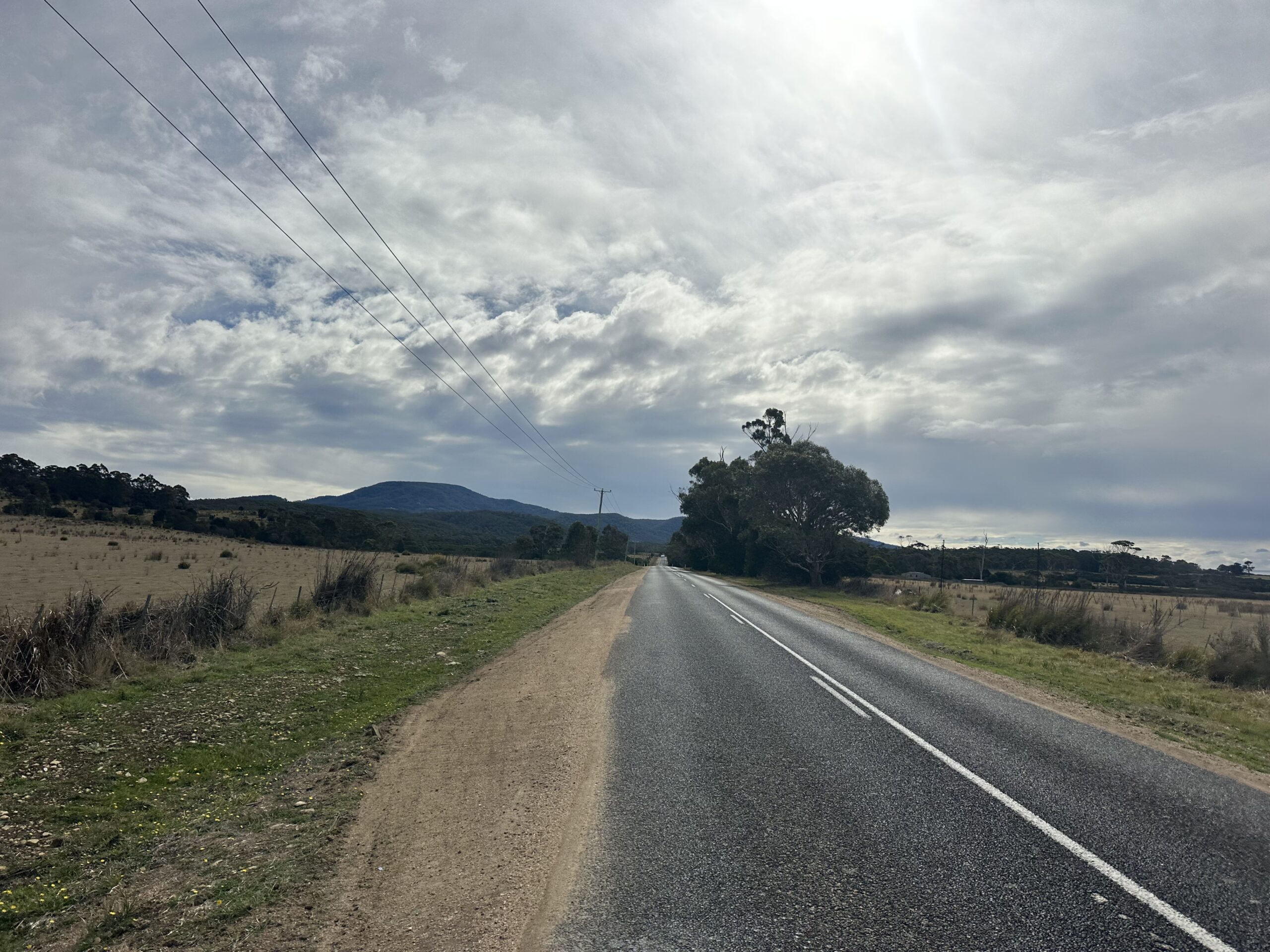Zunächst ging es etwa 25 Kilometer zurück zur A3-Hauptstraße. Von dort fuhr ich weiter bis in die kleine Stadt Bicheno, wo ich meine Vorräte auffüllte. Je weiter ich entlang der Küste Richtung Norden kam, desto stärker wurde der Wind. Erst Seitenwind, dann immer mehr Gegenwind – und genau das ist beim Radfahren das Zermürbendste überhaupt.