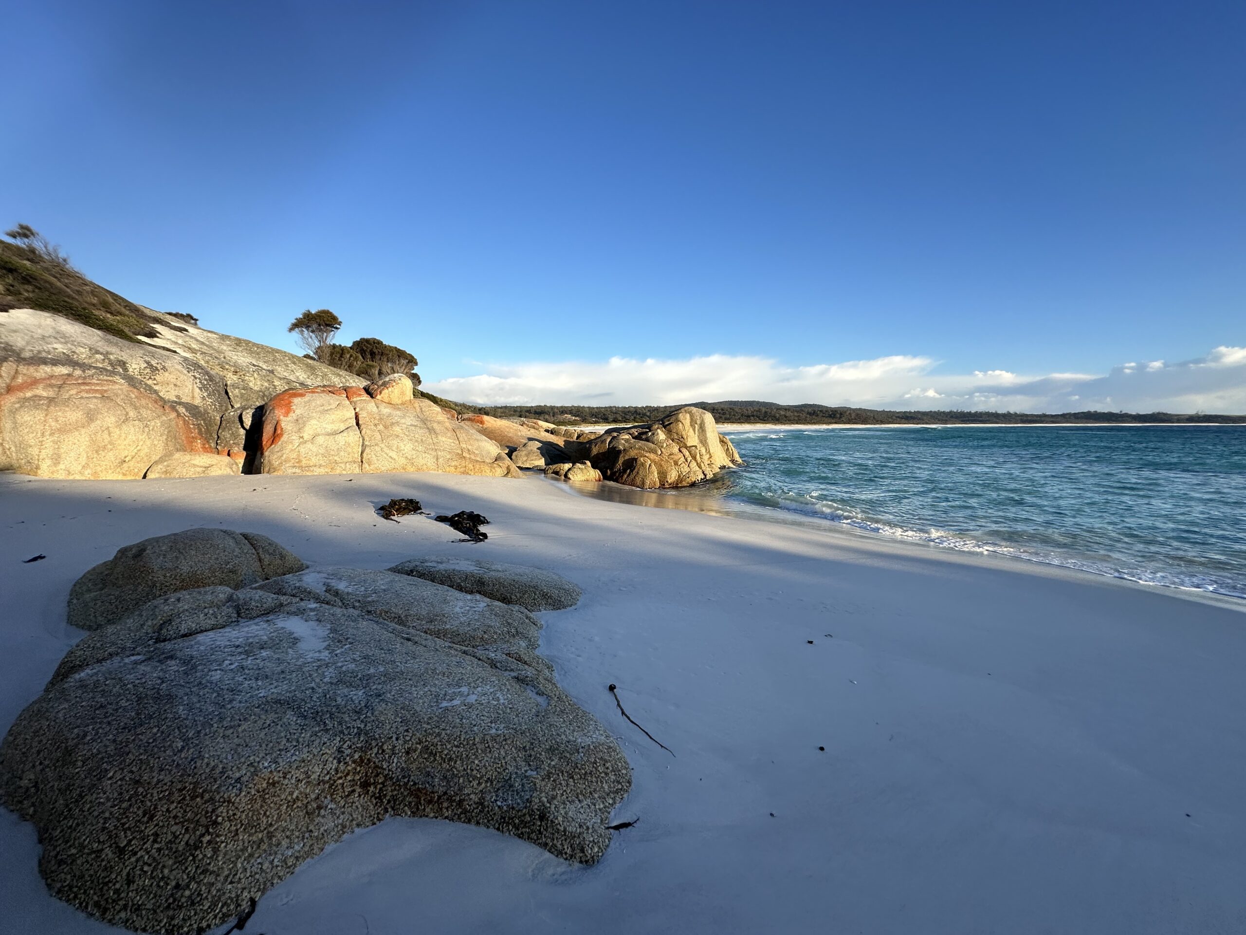 An der Ansons Bay verließ ich den schützenden Wald und kam in offenes Gelände. Dort traf mich das Wetter mit voller Wucht: starker Regen, gefolgt von Hagel. Und dann kam der Wind. Heftig, konstant, zermürbend. Jeder Kilometer wurde zum Kampf.