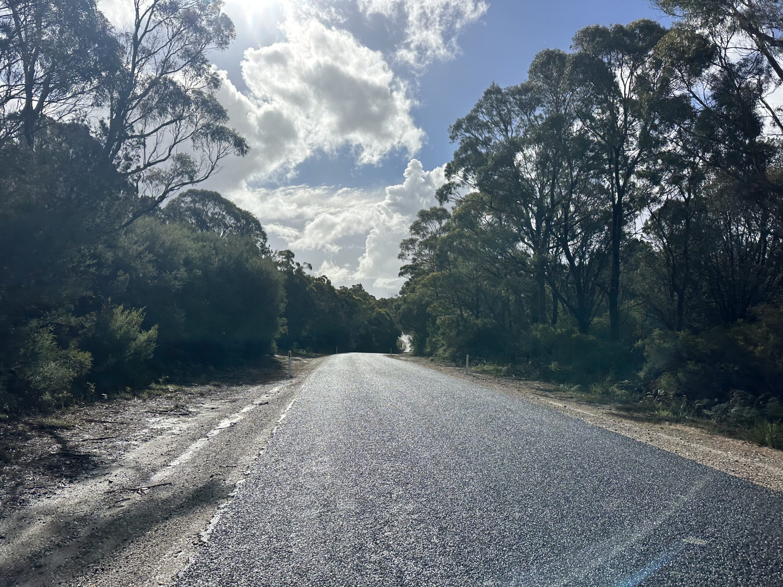 Am Morgen machte ich mir dann mein klassisches Frühstück mit Brot und Erdnussbutter und startete in den Tag. Da ich kein Wasser mehr hatte, fragte ich zwei Camper nach etwas Nachschub. Daraus entwickelte sich direkt ein nettes Gespräch mit zwei Pärchen aus Sydney. Am Ende boten sie mir sogar an, bei ihnen zu übernachten, wenn ich dort vorbeikomme. Genau solche spontanen Begegnungen machen diese Reise für mich so besonders – wir tauschten Nummern aus und zogen weiter.
